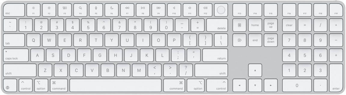 Klawiatura APPLE Magic Keyboard z Touch ID i polem numerycznym Specyfikacja Typ klawiatury: Membranowa Układ klawiszy: Standardowy Klawisze multimedialne: Tak, 12 sztuk Klawisze internetowe: Tak Klawisze numeryczne: Tak Touch ID: Tak Obsługa makr: Tak Komunikacja z komputerem: Bezprzewodowa …