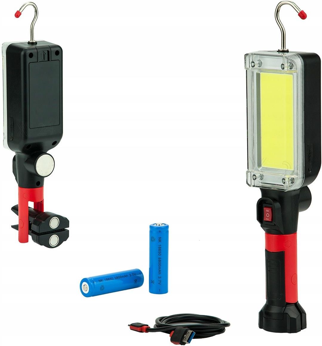 LAMPA ROBOCZA WARSZTATOWA AKUMULATOROWA 20W HAK MAGNES Model: ZJ-8859-B * * * * * * * * * * * * * * * * * * * * * * * * * * * Niezawodna lampa LED zasilana dwoma akumulatorami18650 / 8800 mAh 3,7 V niezastąpiona w warsztatach i serwisach, garażach majsterkowiczów. Dzięki zastosowaniu technologii LED COB (pasek diodowy) latarka daje dużo więcej światła w porównaniu do tradycyjnych, a przy tym jest dużo bardziej oszczędna. Jest bardzo wygodna i praktyczna, przyda się w każdej sytuacji wymagającej poręcznego, dodatkowego źródła światła. Lampa świeci ultra mocnym i jasnym światłem. Wyprofilowana obudowa lampy została wykonana z wysokiej jakości tworzywa dającego odporność na trudne warunki eksploatacji, uderzenia oraz uniemożliwiającego wyślizgiwanie się lampy z mokrej dłoni. Uchylna podstawa, wbudowany magnes oraz haczyk do zaczepiania czynią latarkę bardzo uniwersalną i komfortową w użytkowaniu. Wyposażona w silny uchwyt magnetyczny pozwalający na przytwierdzenie lampy do metalowych powierzchni. Wyposażona w praktyczny i pomocny metalowy hak do zawieszania lampy w wybranym miejscu. Lampa warsztatowa z diodami LED - niezastąpiona we wszelkiego rodzaju precyzyjnych pracach w miejscach zaciemnionych i trudno dostępnych, z magnesem, hakiem i ruchomym korpusem umożliwiającym podwieszenie i oświetlenie miejsca pracy pod pożądanym kątem. Akumulatorowa lampa led wyposażona w zabezpieczenie przed przeładowaniem i wyładowaniem. Uniwersalność zastosowań lampy led gwarantuje umiejscowiona czołowo latarka, a wzmocniona obudowa zapewnia trwałość użytkowania. Bezprzewodowa lampa led z latarką to niezbędne wyposażenie warsztatu. Akumulatorowa mocna latarka led posiada szerokie zastosowanie: W turystyce - oświetlenie wnętrza namiotu - oświetlenie drogi W warsztacie - oświetlenie trudno dostępnych przestrzeni W domu - oświetlenie pomieszczeń podczas braku prądu W samochodzie - Oświetlenie komory silnikowej,wnętrza pojazdu oraz bagażnika Przenośna lampa posiada 2 wymienne akumulatory 18650 co czyni ją bardzo uniwersalnym sprzętem. Możliwość wymiany baterii na lepsze pozwoli maksymalnie wydłużyć czas świecenia nawet do kilkudziesięciu godzin. Dane techniczne: Źródło światła - 1x dioda COB 20 W 700 Lm Zasilanie: 2 x akumulator 3,7V / 4800mah Wymiary: 34 cm x 6,5 cm x 5 cm Wbudowane trzy mocne magnesy na trzonku i jeden z tyłu latarki Regulowana podstawa Szczypce umożliwiające zawieszenie latarki Lekka i poręczna Certyfikat - CE Antypoślizgowa obudowa Odporna na wstrząsy, uderzenia, trudne warunki pracy 2 tryby świecenia: 100% mocy i 50% mocy W zestawie oprócz latarki: Kabel USB 2 x akumulator 4800 mAh 3,7 V Oryginalne opakowanie
