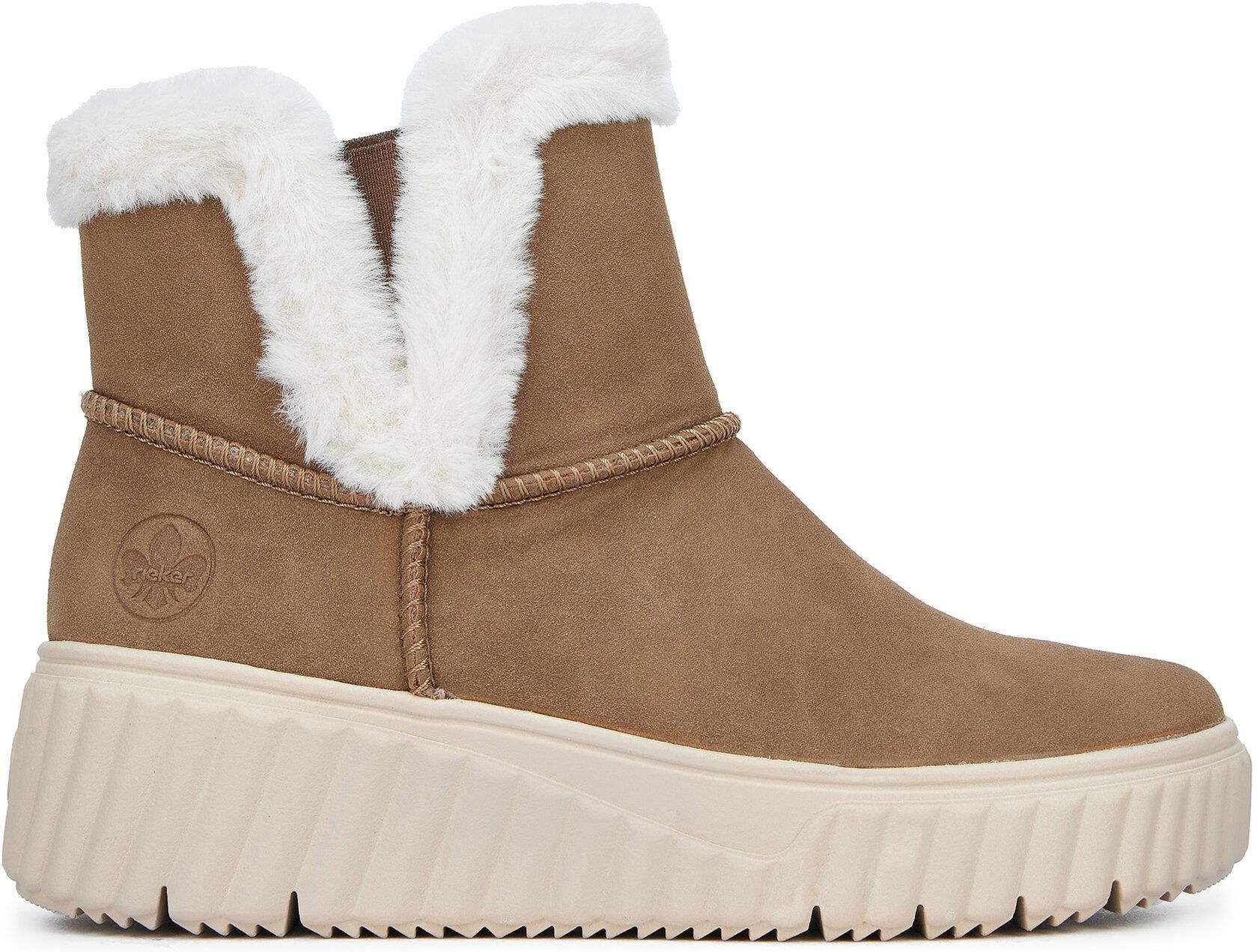 Odkryj wyjątkowe botki damskie marki Rieker w eleganckim brązowym kolorze! Wykonane z wysokogatunkowego tworzywa syntetycznego, te botki łączą styl z funkcjonalnością, oferując komfort i trwałość na co dzień. Dzięki ociepleniu wnętrza, Twoje stopy pozostaną ciepłe nawet w chłodniejsze dni. Podeszwa z koturnem dodaje nie tylko wysokości, ale również optycznie wysmukla sylwetkę i zapewnia stabilność podczas chodzenia. Okrągły nosek i gumowy klin w cholewce podnoszą komfort noszenia, ułatwiając zakładanie i dopasowanie butów. Wybierz botki Rieker i ciesz się wygodą oraz modnym wyglądem każdego dnia! Od ponad stu lat marka Rieker oferuje niezwykle komfortowe i trwałe obuwie, które powstaje z myślą o zdrowiu stóp. Dzięki wieloletniemu doświadczeniu w produkcji obuwia, ta niemiecka marka doskonale potrafi łączyć wygodę ze stylem, dlatego w ofercie znajdziesz buty w modnych, oryginalnych fasonach, które każdemu przypadną do gustu. Buty Rieker tworzone są z materiałów wysokiej jakości, przez co odznaczają się wyjątkową elastycznością i trwałością, ale też lekkością. Ponadto w obuwiu stosuje się szerszą formę zapewniającą odpowiednią stabilizację stopy, specjalne podeszwy absorbujące wstrząsy oraz odciążające stawy i kręgosłup, a także wyjmowane wkładki z pianki Memory Foam, która idealnie dopasowuje się do kształtu stóp. To doskonałe produkty dla tych, którzy ponad wszystko cenią sobie komfort. Przekonaj się!