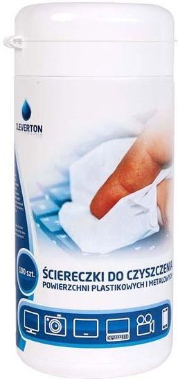 CLEVERTON to marka będąca wynikiem wieloletnich badań rynku w zakresie użyteczności produktów czyszczących urządzenia biurowe, sprzęt komputerowy oraz fotograficzny. Gwarantuje najwyższą jakość, skuteczność oraz funkcjonalność oferowanych produktów. Znajdą Państwo wśród nich proste w użyciu artykuły zapewniające wygodne i dokładne czyszczenie. Cechy główne ✅ Wilgotne ściereczki czyszczące przeznaczone są do czyszczenia i konserwacji powierzchni z tworzyw sztucznych i metalowych urządzeń biurowych takich jak: monitory, obudowy, klawiatury, kopiarki, drukarki, telefony itp. ✅ O działaniu antystatycznym i dezynfekującym. ✅ Ulegające biodegradacji. ✅ Przyjazne dla środowiska. ✅ Nie zawierają alkoholu. ✅ Trzymać z dala od dzieci. ✅ Powłoka ochronna dodatkowo zapobiega wyładowaniom statycznym. ✅ Praktyczny dyspenser ułatwia wyjmowanie pojedynczych ściereczek i chroni pozostałe przed wyschnięciem. Specyfikacja ✅ Rodzaj: nawilżane ✅ Ilość: 100 szt.