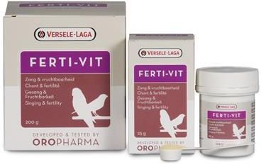 VL-Oropharma Ferti-vit 25g - preparat na śpiew i płodność dla ptaków FERTI-VIT to specjalna mieszanka witamin i aminokwasów wzbogacona o witaminę E. Idealny środek do właściwego przygotowania ptaków do lęgów oraz zawodów. Gwarantuje świetną formę. - Zawiera dużą dawkę witaminy E zwiększającej płodność. - Chroni tkankę mięśniową przed dystrofią oraz zwiększa odporność na infekcje. - Gwarantuje piękny śpiew. Sposób użycia: 1 płaska miarka na 250 ml wody pitnej lub na 100 g miękkiego, jajecznego pokarmu ORLUX. Należy podawać: W czasie przygotowań do lęgu (3-4 tygodnie) do momentu złożenia pierwszego jaja: podawać codziennie Zięby i inne ptaki biorące udział w konkursach: 3 x w tygodniu w sezonie konkursowym. Waga 25 g Waga: 0 kg Produkt marki VERSELE LAGA, której historia sięga 1932 roku. Sprawdzona marka, dostępna w ponad 75 krajach na świecie, oferująca wysokiej jakości produkty o specjalnie dobranych recepturach dla zdrowia i zadowolenia Twojego zwierzęcia.