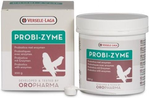 Probi-Zyme to idealny produkt do pobudzenia trawienia u ptaków oraz piskląt. Kombinacja probiotyków i enzymów trawiennych Probi-zyme wspomaga pożyteczną florę bakteryjną jelit i ułatwia trawienie pokarmu. Jest też idealny do pobudzania flory bakteryjnej i jelit u jednodniowych piskląt. Zapobiega przyleganiu bakterii chorobotwórczych w przewodzie pokarmowym, poprawia konsystencję odchodów. Preparat działa na jelita jak probiotyk. Dawkowanie: Produkt ten nie jest rozpuszczalny w wodzie i dlatego musi być podawany z pokarmem. Płaską miarkę (1 g) zmieszać z 100 g miękkiego pokarmu lub z 100g gotowego pokarmu do ręcznego karmienia piskląt. Zaleca się stosowanie Probi-zyme od momentu wyklucia pisklęcia aż do usamodzielnienia.