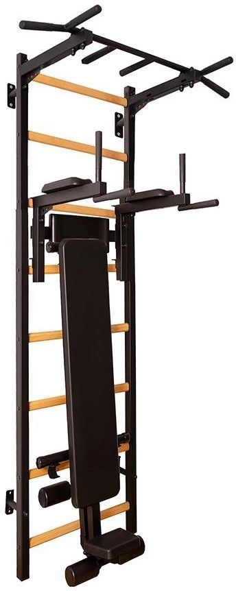 Drabinka gimnastyczna + metalowy drążek + poręcze + ławka czarny BenchK Więcbork