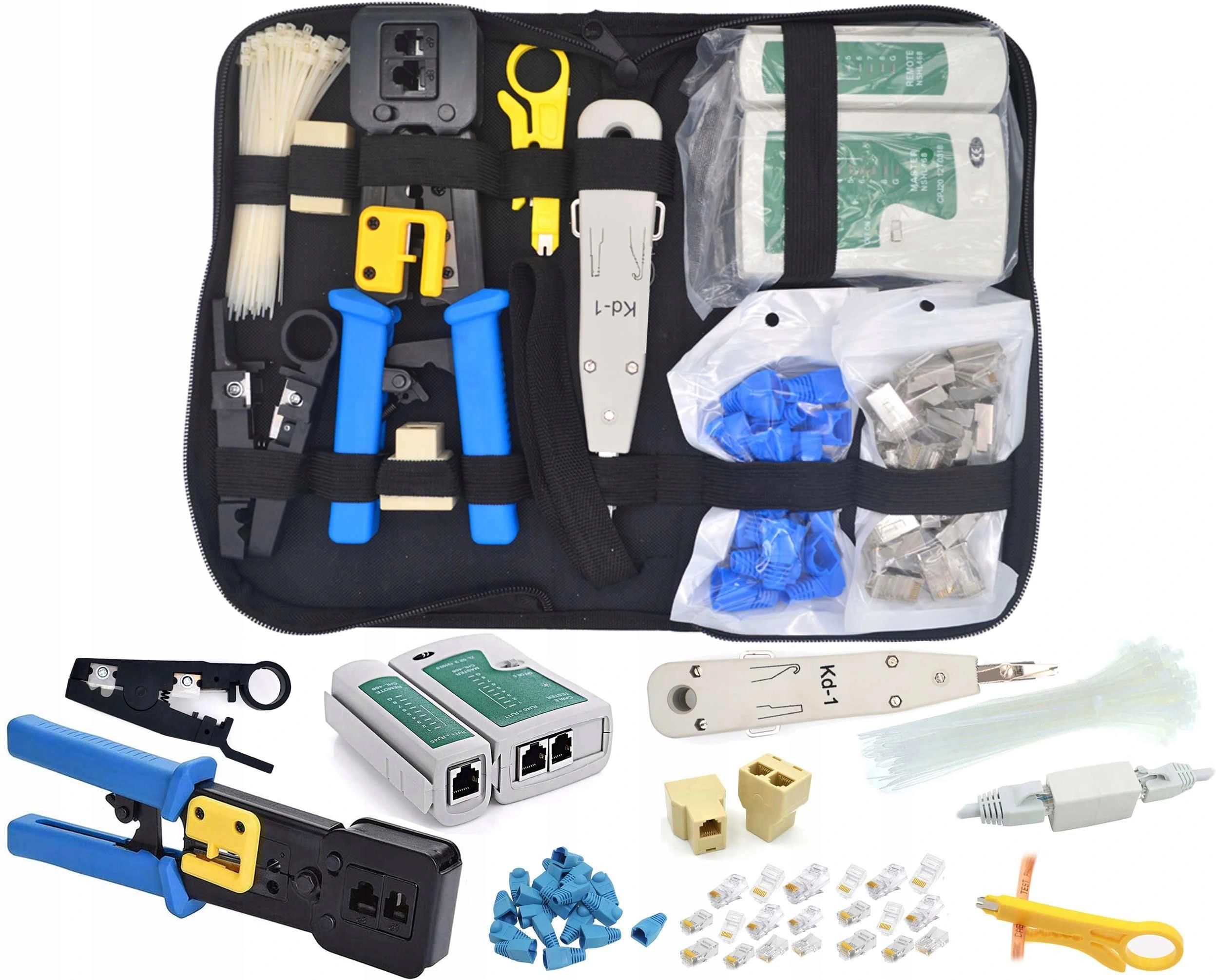 Zestaw sieciowy 10 elementów LAN + etuiZestaw narzędzi do budowy sieci komputerowych również w technologii Pass Through (wtyków przelotowych): zaciskarka RJ9 RJ11 RJ12 RJ45 ,wbudowany ściągacz i obcinacz Zaciskarka do wtyków modularnych standardowych oraz typu Pass Through typu: RJ45 (8P8C) RJ12 …