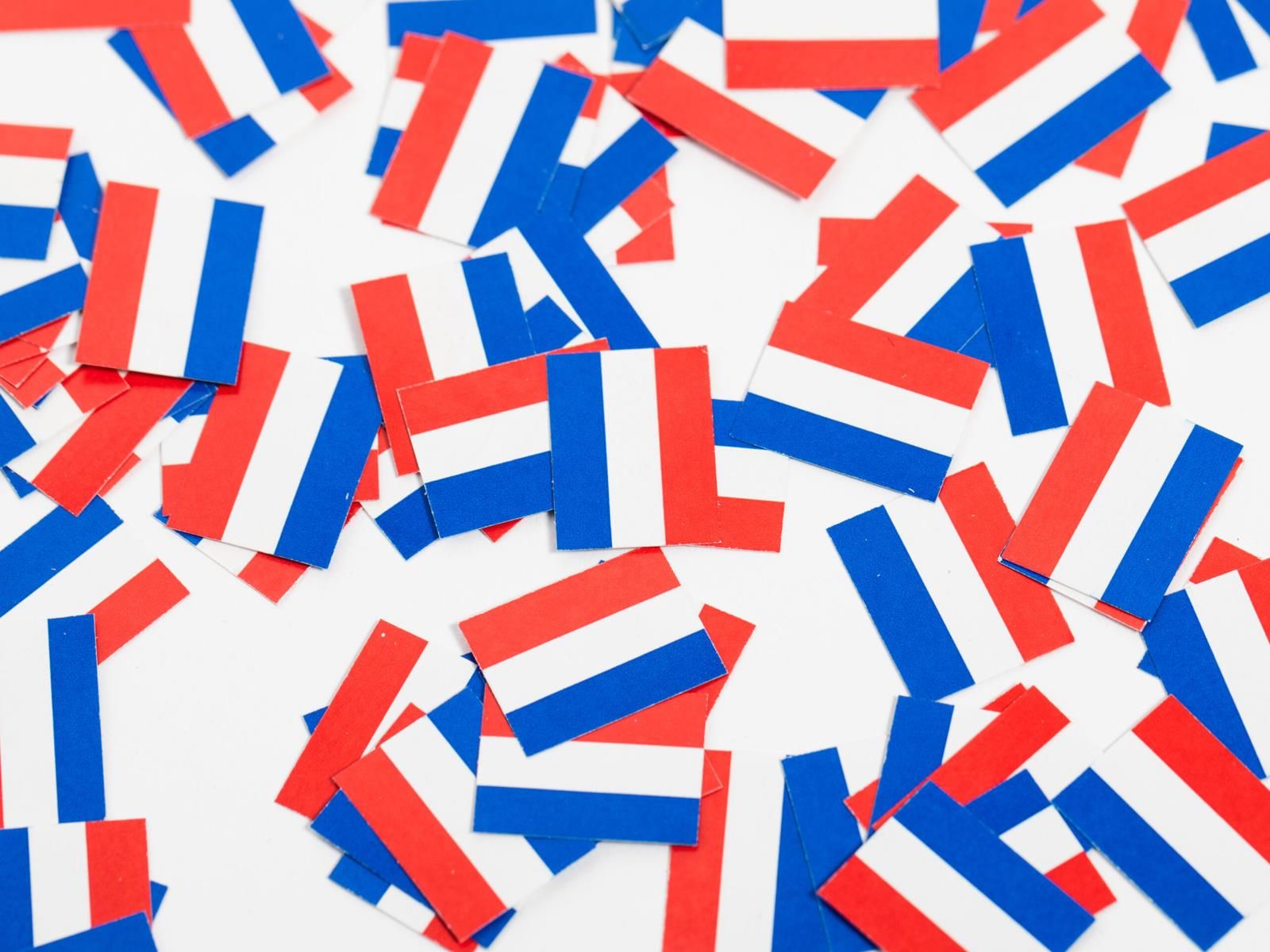 Konfetti papierowe z flagą narodową Francji. Wymiary: 1,5 x 1 cm. Opakowanie: 150 szt.