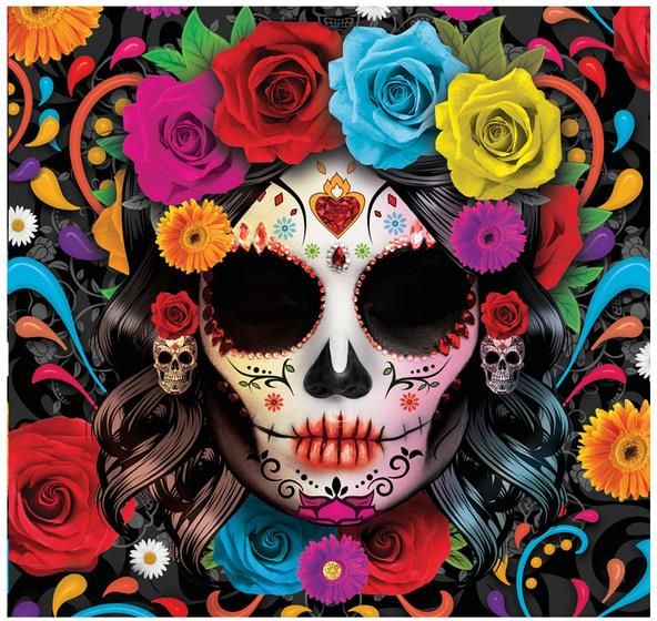 Zestaw serwetek papierowych. Nadruk: meksykańska czaszka. Opakowanie zawiera 12 sztuk. Wymiary ok. 33x33 cm. Idealne na Halloween.