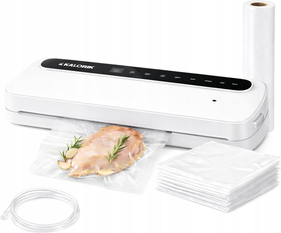 ZGRZEWARKA PRÓŻNIOWA do Żywności Pakowarka MOCNA 110W Zestaw Worki Rękaw PAKOWARKA PRÓŻNIOWA DO MIĘSA, WARZYW I DAŃ | SOUS-VIDE Masz dość wyrzucania jedzenia, które szybko się psuje? Chcesz dłużej przechowywać produkty i zachować ich świeżość? NAJWAŻNIEJSZE ZALETY ZGRZEWARKI Mocny silnik 110W i siła próżni 65kPa - Szybkie i skuteczne odsysanie powietrza zapewnia szczelne pakowanie żywności w kilka sekund. Gruby zgrzew ponad 3 mm - Solidny i trwały zgrzew chroni produkty przed powietrzem oraz wilgocią. Szeroka listwa zgrzewająca 30 cm - Możliwość pakowania większych porcji żywności oraz korzystania z folii w rolce. 7 trybów pracy - Dopasuj ustawienia do rodzaju żywności – produkty suche, wilgotne lub delikatne. System próżniowy z wężykiem - Możliwość odsysania powietrza z pojemników próżniowych oraz butelek. Bogaty zestaw startowy - W komplecie 30 worków próżniowych oraz rękaw 22 × 500 cm. MOC 110W – SZYBKIE I SKUTECZNE ZGRZEWANIE Zgrzewarka próżniowa została zaprojektowana tak, aby zapewnić wysoką wydajność i wygodę użytkowania. Dzięki mocy 110W urządzenie szybko się nagrzewa i tworzy mocny, szczelny zgrzew już w kilka sekund. 110W mocy – szybkie nagrzewanie i pewny zgrzew Stabilna praca urządzenia – stała wydajność bez spadków mocy Idealna do częstego używania – sprawdzi się w domu i przy meal prep Energooszczędne działanie – wysoka efektywność przy niskim zużyciu energii Efekt? Szybkie i szczelne pakowanie żywności za każdym razem. SIŁA PRÓŻNI 65 kPa – SKUTECZNE USUWANIE POWIETRZA Zgrzewarka generuje mocne podciśnienie 65 kPa, które pozwala skutecznie usunąć powietrze z worka i wydłużyć świeżość przechowywanej żywności. Silne zasysanie powietrza – ogranicza proces psucia się produktów Dłuższa świeżość – żywność może pozostać świeża nawet do 5× dłużej Uniwersalne zastosowanie – idealna do mięsa, ryb, warzyw, serów i owoców Lepsze mrożenie – brak powietrza zapobiega przemrożeniom i kryształkom lodu Efekt? Świeża, aromatyczna żywność na dłużej. GRUBY ZGRZEW 3 mm – PEWNA SZCZELNOŚĆ Zgrzewarka posiada mocny zgrzew o grubości 3 mm, który zapewnia trwałe i szczelne zamknięcie worka. Dzięki temu żywność jest skutecznie chroniona przed powietrzem i wilgocią. Trwały i mocny zgrzew – mniejsze ryzyko rozszczelnienia Idealny do mokrych i tłustych produktów Równa i estetyczna linia zgrzewu bez przypaleń Bezpieczne przechowywanie w lodówce i zamrażarce Efekt? Maksymalna szczelność i pewność, że opakowanie pozostanie zamknięte. TAŚMA GRZEWCZA 30 CM – WIĘKSZA WYGODA PAKOWANIA Szeroka listwa zgrzewająca 30 cm pozwala wygodnie pakować zarówno małe produkty, jak i większe porcje jedzenia. Obsługa worków i folii do 30 cm szerokości Możliwość używania gotowych worków i folii z rolki Równomierne nagrzewanie na całej długości zgrzewu Mocny i estetyczny efekt zamknięcia Rezultat? Większa wygoda pakowania i idealny zgrzew za każdym razem. 7 TRYBÓW PRACY – IDEALNE DOPASOWANIE DO KAŻDEJ ŻYWNOŚCI Zgrzewarka oferuje 7 trybów pracy, które pozwalają dopasować sposób pakowania do rodzaju produktu. Dzięki temu możesz bezpiecznie pakować zarówno delikatne produkty, jak i wilgotne lub soczyste potrawy. W trybie automatycznym urządzenie najpierw odsysa powietrze z worka, a następnie wykonuje szczelny zgrzew, tworząc trwałe opakowanie próżniowe. Tryby automatyczne MIĘKKIE – delikatne zasysanie do pieczywa, ziół i kruchych produktów SUCHE – do makaronów, orzechów, serów czy bakalii MOKRE – do lekko wilgotnych produktów, np. owoców lub warzyw MOKRE+ – do produktów z płynami, np. marynowanego mięsa Tryby ręczne RĘCZNY – pełna kontrola nad procesem pakowania WYSYSAĆ – odsysanie powietrza z pojemników próżniowych GRZAĆ – samo zgrzewanie folii bez próżni Efekt? Pełna kontrola i idealne pakowanie każdego rodzaju żywności. WĘŻYK PRÓŻNIOWY W ZESTAWIE – WIĘCEJ MOŻLIWOŚCI Zgrzewarka umożliwia nie tylko pakowanie w worki, ale także odsysanie powietrza z pojemników próżniowych i butelek. Dzięki dołączonemu wężykowi możesz łatwo przedłużyć świeżość produktów przechowywanych w pojemnikach. Wężyk próżniowy w zestawie – gotowy do użycia od razu Wbudowany port próżniowy do obsługi pojemników i akcesoriów Idealny do przechowywania sosów, zup, sałatek, przypraw czy kawy Ekologiczne rozwiązanie – możliwość wielokrotnego używania pojemników Efekt? Jeszcze więcej sposobów na przechowywanie świeżej żywności. 30 WORKÓW W ZESTAWIE – GOTOWE DO UŻYCIA OD RAZU Kupując zgrzewarkę otrzymujesz praktyczny zestaw startowy, który pozwala rozpocząć pakowanie próżniowe natychmiast po rozpakowaniu urządzenia. 30 worków próżniowych w różnych rozmiarach Wytrzymała folia odporna na rozdarcia Odpowiednie do mrożenia i przechowywania żywności Bezpieczne materiały BPA FREE Dzięki temu możesz zacząć pakowanie bez dodatkowych zakupów. RĘKAW PRÓŻNIOWY 5 m – DOPASUJ ROZMIAR DO PRODUKTU W zestawie znajduje się również rękaw próżniowy o długości 5 metrów, który pozwala samodzielnie przygotować worki o dowolnej długości. Możliwość dopasowania rozmiaru worka do każdego produktu Idealny do pakowania większych porcji mięsa, ryb lub warzyw Oszczędność folii – używasz tylko tyle, ile potrzebujesz Wytrzymała struktura folii zapewniająca mocny i szczelny zgrzew Efekt? Większa elastyczność pakowania i jeszcze więcej możliwości przechowywania żywności. SPECYFIKACJA TECHNICZNA Moc: 110W Szerokość zgrzewu: 3mm Maksymalna szerokość folii: 30cm Długość taśmy grzewnej: 30cm Siła próżni: >65 kPa Tryby pracy: 7 trybów (4 automatyczne+ 3 ręczne) System próżniowy: Gniazdo do wężyka + wężyk próżniowy w zestawie Obsługiwane worki/folie: Do 30 cm szerokości (folie z rolki i gotowe woreczki
