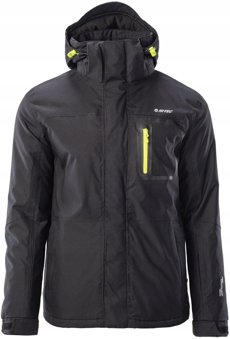Kurtka zimowa HiTec Bicco II czarna narciarska L HITEC Kurtka zimowa HiTec Bicco II czarna narciarska. Skład materiałowy Materiał zewnętrzny: 100% nylon – trwały i odporny na warunki atmosferyczne. Podszewka: 100% poliester – dla wygody i komfortu noszenia. Wypełnienie: 100% poliester – zapewnia dodatkową ochronę cieplną. Specyfikacja Wodoodporność: 5 000 mm H₂O – zabezpieczenie przed umiarkowanym deszczem i śniegiem. Oddychalność: 5 000 g/H₂O/m² – pozwala na odpowiednią wentylację. Technologia Tecproof – dla zwiększonej ochrony przed wilgocią i chłodem. Pas przeciwśnieżny: odpinany – zapewnia izolację przy intensywnym śniegu. Kieszeń na skipass – wygodna kieszeń na karnet narciarski. Główny zamek zabezpieczony listwą z rzepem – dodatkowe zabezpieczenie przed wiatrem. Laminowane zamki – ochrona przed przenikaniem wody. Kaptur odpinany i regulowany – dla wygody oraz ochrony przed deszczem i wiatrem. Elementy odblaskowe – zwiększona widoczność w warunkach słabego oświetlenia. Dwie wewnętrzne kieszenie (w tym jedna audio) oraz dodatkowa kieszeń na telefon. Klejone szwy – pełna ochrona przed wodą w kluczowych miejscach. Wentylacja pod pachami zapinana na zamek – regulacja przepływu powietrza podczas aktywności. Kurtka idealna do intensywnej aktywności w warunkach zimowych, oferująca doskonałą ochronę przed wilgocią, odpowiednią izolację cieplną oraz praktyczne rozwiązania dla miłośników sportów zimowych.