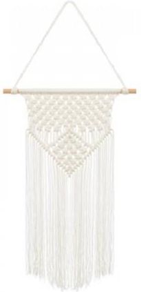 Makrama to szybki oraz oryginalny sposób na stworzenie pięknej dekoracji ślubnej, komunijnej i nie tylko, zarówno w pomieszczeniu jak i na zewnątrz. Dekoracja wykonana ze sznurka bawełnianego w kolorze złamanej bieli. Wymiary ok. 30 x 49cm.