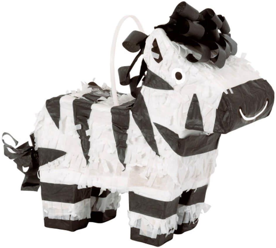 Pinata Mini Zebra, idealna na urodziny dla dzieci. Zabawa polega na strąceniu zawieszonej dekoracji z reguły wypełnionej słodyczami. Wymiary: 17 x 20 x 7 cm Opakowanie: 1 szt.