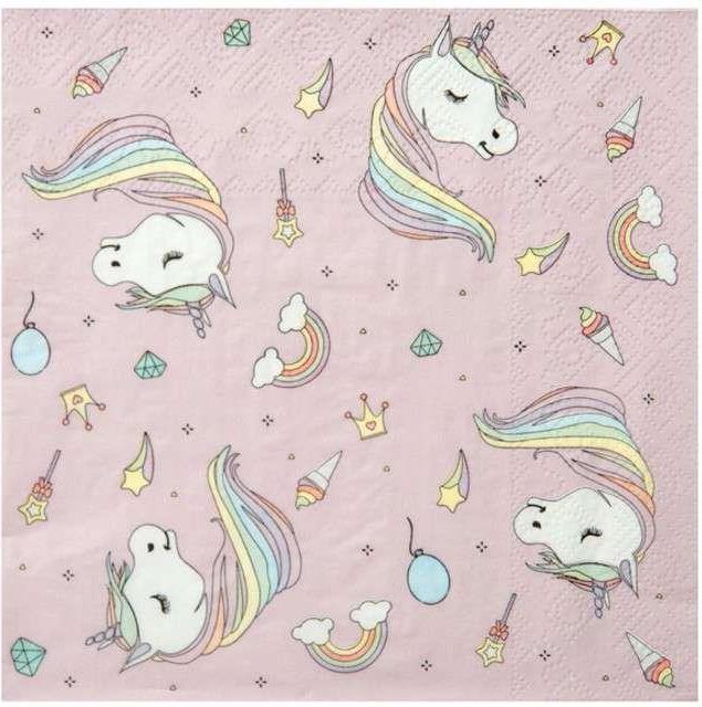 Serwetki papierowe utrzymane w pastelowej kolorystyce z tęczowymi jednorożcami. Serwetki są dedykowane na urodziny, garden party i inne imprezy okolicznościowe. W zestawie znajduje się 20 serwetek typu lunch. doklejka - topy jednorożec,jednorazowy,jednorożec / unicorn,lunch (33 cm),SANTEX,Unicorn …