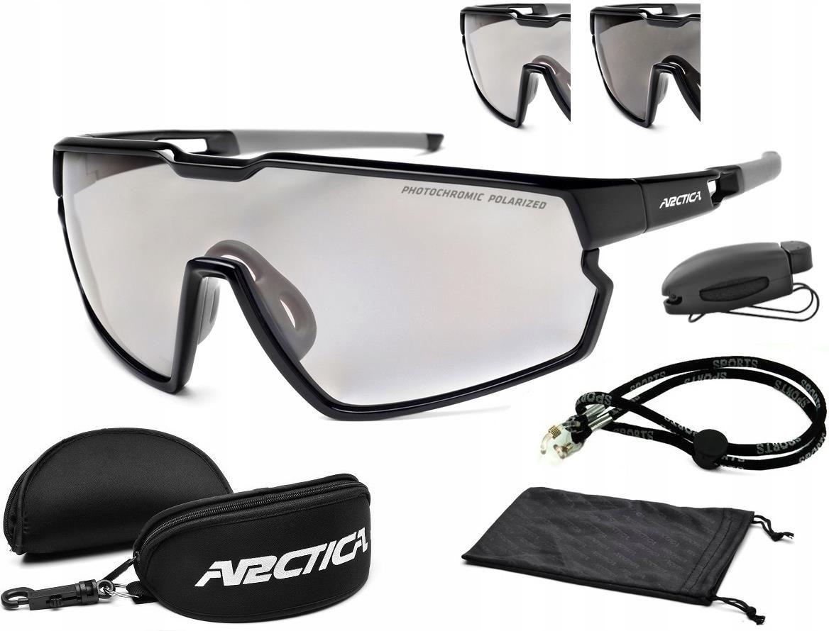 Okulary Przeciwsłoneczne ARCTICA S-333FP - Okulary sportowe Na rower z POLARYZACJĄ i FOTOCHROMEM !!! Oprawka Materiał Grilamid TR 90 Kolor Czarno - szary Gumowane Zauszniki Gumowe Noski Szkła Poliwęglanowe Przyciemniane Szare Polaryzacyjne Fotochromatyczne Filtr UV-400 Pod wpływem słońca, okulary …