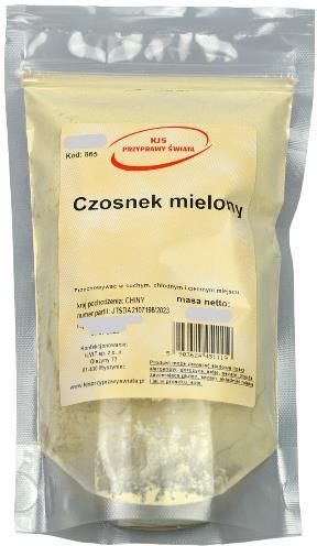 Czosnek mielony jest powszechnie znany i używany niemal w każdym zakątku świata. Jest jedną z najbardziej popularnych roślin przyprawowych, używany jest od wielu wieków.Dodaje wiele smaku a przede wszystkim poprawia zdrowie. Zalety stosowania czosnku mielonego: zawiera duże ilości żelaza i innych minerałów jak i witamin wspomaga pracę serca chroni układ pokarmowy i wspomaga trawienie wzmacnia odporność Do czego użyjemy: do dań kuchni polskiej do wędzonek do różnego rodzaju mięsa do ryb do marynat do dań ostrych i pikantnych Skład: czosnek mielony Kraj pochodzenia: Chiny Masa netto: 1 kg Produkt pakowany jest w opakowanie typu "doypack" ze struną, co pozwala na zachowanie długiej świeżości. To opakowanie pozwala na częste otwieranie i zamykanie. Gwarantuje trwałość i pewność co jest ważne podczas transportu. Przechowywać w suchym i ciemnym miejscu ! Produkt może zawierać śladowe ilości alergenów: gorczycę, seler, sezam, zboża zawierające gluten, orzechy, składniki mleka i jaj w proszku, soję !