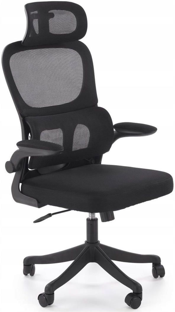 Nowoczesny Ergonomiczny Fotel Obrotowy Biurowy do Biurka Czarny z Mechanizm SOREN od Halmar Kolor: Czarny Materiał tapicerki: Siatka Materiał podstawy: Polipropylen Funkcje: Regulowany zagłówek, mechanizm TILT, regulowane podłokietniki Kółka: Kauczukowe Maksymalne obciążenie: 120 kg Przeznaczenie: Biuro, gabinet ZALETY Regulowany zagłówek - Indywidualne dopasowanie zagłówka zapewnia odpowiednie wsparcie dla szyi i ramion, zmniejszając zmęczenie podczas pracy. Mechanizm TILT - Inteligentny system regulacji pozycji siedzącej, który pozwala na precyzyjne dostosowanie fotela do indywidualnych potrzeb. Tapicerka z siatki - Tapicerka wykonana z siatki zapewnia odpowiednią cyrkulację powietrza, co znacząco poprawia komfort podczas długotrwałego siedzenia. Regulowane podłokietniki - Możliwość dostosowania ustawień podłokietników zapewnia maksymalny komfort podczas pracy czy spotkań. Kółka kauczukowe - Stabilne i ciche kółka kauczukowe zapewniają swobodę ruchu bez ryzyka ślizgania się lub hałasu. REGULOWANY ZAGŁÓWEK Dopasuj wsparcie do swojej postury. Regulowany zagłówek to kluczowy element ergonomii. Dzięki temu możesz łatwo dostosować fotel do swoich wymagań, zapewniając odpowiednie wsparcie dla szyi i ramion, co znacząco zmniejsza zmęczenie podczas długotrwałego siedzenia. MECHANIZM TILT Dostosuj fotel do swojej postawy. Mechanizm TILT to innowacyjne rozwiązanie, które pozwala na płynne nachylanie całego siedziska, wspierając naturalną pozycję kręgosłupa. Dzięki temu możesz swobodnie się poruszać, a jednocześnie zachować odpowiednie wsparcie dla pleców – idealne rozwiązanie zarówno na co dzień, jak i do długich godzin pracy. TAPIERCERKA Z SIATKI Odpowiednia cyrkulacja powietrza. Tapicerka wykonana z siatki nie tylko wygląda nowocześnie, ale również zapewnia odpowiednią cyrkulację powietrza, co znacząco poprawia komfort podczas długotrwałego siedzenia. Dzięki temu unikasz nadmiernego nagrzewania i pocenia. WYMIARY (+/- 1 cm) Szerokość: 62 cm Głębokość: 62 cm Wysokość: 116–124 cm Wysokość siedziska: 46–54 cm ZAPRASZAMY DO ZAKUPU