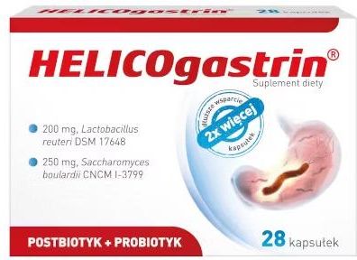 HELICOgastrin POJEMNOŚĆ: 28 kapsułek ZASTOSOWANIE Lactobacillus reuteri DSM 17648 i Saccharomyces boulardii DBVPG 6763 korzystnie wpływają na mikrobiotę człowieka. Szczep Lactobacillus reuteri DSM 17648 wpływa na bakterie Helicobacter pylori wiążąc je i agregując w żołądku, a następnie eliminując z …