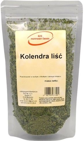 Kolendra liść 200g to bardzo aromatyczna przyprawa o lekko cytrusowym smaku i zapachu. Jest popularna w kuchni meksykańskiej, bliskowschodniej i azjatyckiej. Skład: kolendra liść 100% Kraj pochodzenia: Polska Masa netto: 200g Produkt pakowany jest w opakowanie typu "doypack" ze struną, co pozwala na zachowanie długiej świeżości. To opakowanie pozwala na częste otwieranie i zamykanie. Gwarantuje trwałość i pewność co jest ważne podczas transportu. Przechowywać w suchym i ciemnym miejscu ! Produkt może zawierać śladowe ilości alergenów: gorczycę, seler, sezam, zboża zawierające gluten, orzechy, składniki mleka i jaj w proszku, soję !