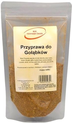 Przyprawa do gołąbków 50g nadaj swoim gołąbkom pełnego smaku i aromatu. Ta kompozycja przypraw i warzyw została stworzona aby nasze danie nie było nudne i mdłe. Można ją dodawać do farszu, którym wypełniamy liście kapusty ale również do sosu pomidorowego, w którym się gotują. Skład: przyprawy ( papryka, kminek, kolendra, pieprz czarny, korzeń lubczyka, gałka muszkatołowa), suszone warzywa: ( czosnek, cebula, marchew, pasternak, pietruszka, por), sól 22%, szałwia Kraj pochodzenia: Polska Masa netto: 50g Produkt pakowany jest w opakowanie typu "doypack" ze struną, co pozwala na zachowanie długiej świeżości. To opakowanie pozwala na częste otwieranie i zamykanie. Gwarantuje trwałość i pewność co jest ważne podczas transportu. Przechowywać w suchym i ciemnym miejscu ! Produkt może zawierać śladowe ilości alergenów: gorczycę, seler, sezam, zboża zawierające gluten, orzechy, składniki mleka i jaj w proszku, soję !