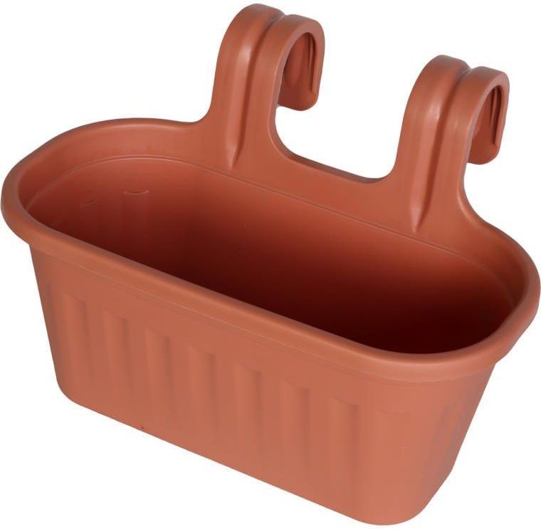 Doniczka to niezwykle przydatny element m.in. balkonu. Ciekawy kształt produktu sprawia, że sama doniczka jest elementem dekoracyjnym. Donica posiada odpowiedni kształt aby założyć ją na balustradę. Tworzywo z którego została wykonana jest maksymalnie odporne na działanie promieni UV, co oznacza, że kolorem będziesz mógł się cieszyć przez wiele lat. Nie groźny jej mróz czy inne nie sprzyjające warunki atmosferyczne.