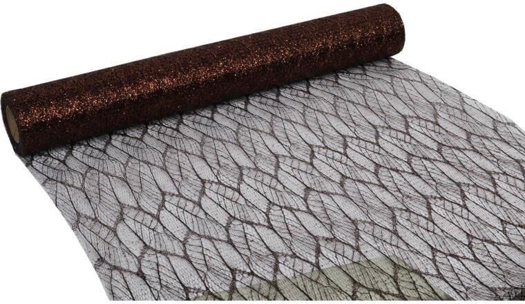 Organza Brązowa Z Nadrukiem Brokatowym 0,50X10 M 325860 Wieleń