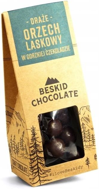 Beskid Chocolate to manufaktura czekolady z Węgierskiej Górki w Beskidzie Żywieckim. Od 2017 roku tworzy czekoladowe arcydzieła, korzystając z najwyższej jakości ziaren kakaowca z całego świata. Ich receptura opiera się na starannej obróbce ziaren, która trwa minimum 48 godzin, gwarantując niezapomniane doznania smakowe. Czekoladowe rarytasy Beskid Chocolate to połączenie tradycji rzemieślniczej z nowoczesnym podejściem do produkcji. Odkryj magię prawdziwej czekolady z Beskid Chocolate! Orzechy laskowe w gorzkiej czekoladzie to starannie wyselekcjonowane orzechy, dokładnie oczyszczone i delikatnie prażone, by zachować ich naturalny smak i chrupkość. Następnie są one zanurzane w gęstej i intensywnej czekoladzie gorzkiej o zawartości kakao wynoszącej co najmniej 72%, tworząc niepowtarzalne połączenie smakowe. To nie tylko pyszna przekąska, ale również doskonały pomysł na prezent dla miłośników czekolady i orzechów laskowych. Orzechy laskowe w ciemnej czekoladzie mogą być także wyjątkowym dodatkiem do świątecznego stołu, dodając elegancji i smaku. Produkt ten produkowany jest z najwyższej jakości składników, aby zapewnić doskonałą świeżość i intensywny smak. Każdy kęs to prawdziwa rozkosz dla podniebienia. Skład: Czekolada gorzka: masa kakaowa min. 72% (ziarno kakaowca, cukier, masło kakaowe, emulgator: lecytyna sojowa), orzech laskowy (50%), polewa cukrowa 0,05% (syrop glukozowy, guma arabska, masło shea, kwasek cytrynowy, sorbinian potasu)