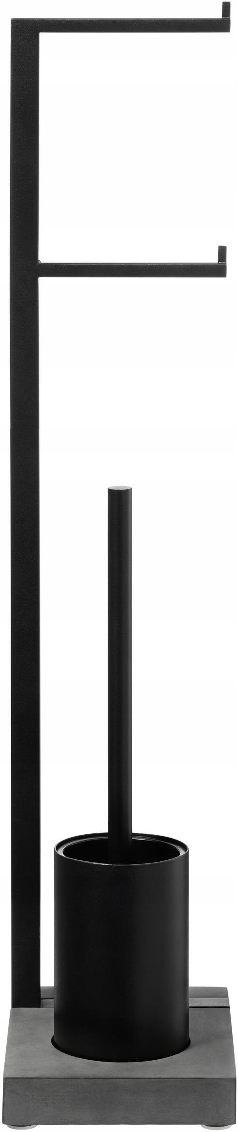 Stojak na papier toaletowy podwójny i szczotkę do WC czarny Blomus Stojak na papier toaletowy oraz szczotkę Menoto marki Blomus to element, którego nie może zabraknąć w żadnej łazience. CECHY PRODUKTU Zgrabna konstrukcja zestawiona została z funkcjonalnością, która pozwala na umieszczenie dwóch elementów w jednym. Takie rozwiązanie umożliwia zaoszczędzenie miejsca, a dodatkowo zapewnia wyszukany i elegancki wygląd. Nowoczesny design czarny, matowy odcień podstawa z PolyStone (tworzywo sztuczne imitujące kamień) stalowa, nierdzewna konstrukcja wyjmowana wkładka, ułatwiająca czyszczenie wentylowany pojemnik na szczotkę Wymiary: 15x20x72,5cm Stojak Menoto Black to wysokiej jakości akcesorium łazienkowe, które zapewni doskonały komfort. Wykonany został z podstawy PolyStone, czyli wysokiej jakości tworzywa sztucznego, imitującego kamień. Dzięki użyciu takiego materiału, stojak jest odporny na działanie środków chemicznych, w przeciwieństwie do naturalnego kamienia. Konstrukcja stojaka stworzona została z polerowanej stali nierdzewnej, wykończonej w czarnym, matowym odcieniu. Zaprojektowana w kwadratowej formie rura, przechodzi przez płytę podstawy, tworząc stabilną oraz trwałą kompozycję. Pojemnik na szczotkę sprawia wrażenie zamkniętego, jednak mimo to, posiada specjalnie wykonaną pokrywę, która zapewnia wentylację. Dostęp do powietrza umożliwia szybkie schnięcie szczotki toaletowej oraz higienę. Wyjmowana wkładka zapewnia proste i wygodne czyszczenie. Seria Menoto marki Blomus idealnie sprawdzi się w łazienkach o nowoczesnej stylistyce. W jej skład wchodzą wszelkie akcesoria łazienkowe, o różnych wykończeniach oraz przeznaczeniu, dzięki czemu pozwalają na stworzenie funkcjonalnego oraz niezwykle wytwornego wnętrza.