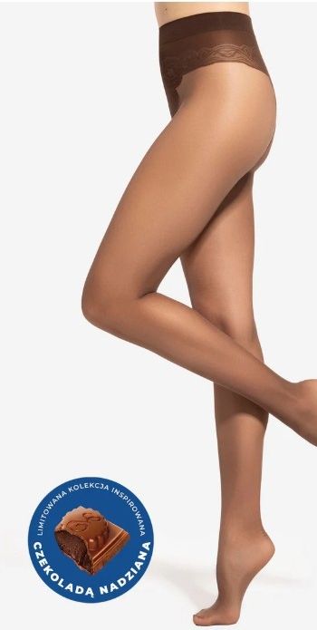 GATTA & WEDEL TIGHTS MIKROFIBRE 20den Dark Choco / 4-L Rajstopy z wyjątkowej kolekcji Gatta x Wedel to połączenie elegancji, delikatności i stylowego charakteru. Odcień Dark Choco inspirowany głębią czekolady doskonale komponuje się z jesiennymi barwami – beżem, brązem, czernią czy oliwkową zielenią. To propozycja, która doda ciepła i wyrafinowania każdej stylizacji – zarówno codziennej, jak i eleganckiej. Model ten został wykonany z wysokiej jakości przędzy, dzięki czemu rajstopy są półtransparentne, delikatne, a zarazem trwałe. Zastosowana konstrukcja T-band (bezmajtkowa z wzmocnieniem w kształcie litery T) zapewnia większy komfort użytkowania, lepsze dopasowanie i dyskretny wygląd pod ubraniem. Rajstopy mają matowe wykończenie, które subtelnie podkreśla nogi, nadając im elegancki, naturalny efekt. To model dla kobiet, które cenią lekkość, wygodę i ponadczasowy styl. Skład: 90% Poliamid 10% Elastan. Polecamy nasze pozostałe ogłoszenia! Wszystkie nasze produkty są nowe z oficjalnego kanału dystrybucji producenta. Oryginalnie zapakowanych produktów nie otwieramy, nie weryfikujemy poprawności kompletacji towaru przez producenta. Staramy się, aby byli Państwo maksymalnie zadowoleni zarówno z produktów jak i z poziomu obsługi. Nasze przesyłki pakowane są w foliopaki - jeśli chcesz otrzymać idealne, nienaruszone podczas transportu opakowanie wybierz opcje dodatkową - "Pakowanie na prezent". Zapewni to radość z opakowania nieuszkodzonego przez kuriera.
