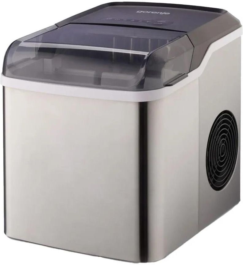Kostkarka do lodu Gorenje  IMD1200SB Pojemność zbiornika na wodę: 1,3 l Wydajność dzienna: 12 kg Czas przygotowania kostek lodu: 9 min Typ sterowania: Sterowanie elektroniczne DO 12 KG LODU DZIENNIE Zawsze pod ręką Do 12 kg świeżego lodu dziennie. Ten przenośny ekspres do lodu to świetny i wygodny sposób na zrobienie dużej ilości lodu w krótkim czasie.   Szybka w działaniu Zaczynamy imprezę! Już po około 10 minutach masz do dyspozycji pierwszych 10 kostek a następnych 50 po godzinie. W ciągu dnia możesz mieć nawet 12 kg kostek. Kiedy potrzebujesz mieć szybko lód w kostkach po prostu wlej wodę i uruchom urządzenie! Dwa rozmiary kostek Rozmiar S czy L Żeby mieć do dyspozycji kostki lodu po prostu napełnij pojemnik wodą i wybierz rozmiar kostek lodu - maly lub duży. Już po chwili maszyna automatycznie zacznie wyrzucać kostki jak pociski. Kostkarka Gorenje jest lekka i poręczna, doskonała zarówno w domu jak i na kempingu czy w biurze. Panel sterowania Łatwy w obsłudze Na panelu sterowania znajduje się jeden przycisk. Można wybrać duże lub małe kostki lodu. Wskaźnik zapełnienia kosza zapali się, gdy kosz na lód będzie pełny. Wskaźnik poziomu wody przypomni o konieczności dolania wody do zbiornika. Posiada również wskaźnik samoczyszczenia. Miarka do lodu Pomaga w obsłudze Za pomocą dołączonej łyżki do lodu można łatwo pobrać z kosza tylko pożądaną lub potrzebną ilość lodu. Pozostały lód można wykorzystać później lub będzie się on powoli topił, a urządzenie przetworzy wodę do produkcji nowego lodu. Prosta obsługa Żadnych zmartwień Zbiornik wody może pomieścić do 1,3 litra. Wskaźnik poziomu wody przypomni o konieczności uzupełnienia zbiornika. Kostkarka do lodu jest również łatwa w czyszczeniu. Posiada odpływ w dolnej części, który ułatwia opróżnianie. Wnętrze wystarczy przetrzeć suchą szmatką.