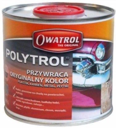 Przywraca kolor i wygląd podniszczonych i wyblakłych plastików i włókna szklanego (GRP) - zderzaki samochodowe, kadłuby łodzi, meble ogrodowe, okiennice... Przywraca dawny wygląd powierzchniom marmurowym, płytkom, nagrobkom, terakocie - wszędzie tam gdzie kolor poszarzał. Odnawia i przywraca kolor matowym i kredującym się farbom i lakierom. Przywraca połysk i chroni powierzchnie chromowane i polerowane metale: aluminium, chrom, mosiądz, brąz. Zalecenia przed aplikacją: Przed użyciem POLYTROL należy zawsze upewnić się, że powierzchnia jest czysta i wolna od tłuszczu, silikonu i w pełni sucha. W razie konieczności wyczyszczenia powierzchni, zaleca się stosowanie rozpuszczalnika na metal lub mieszaniny wody z detergentem Dokładnie spłukać i zostawić na 12 godzin do pełnego wyschnięcia. Zabezpieczyć miejsca których nie chcemy rewitalizować. Aplikacja: Przed użyciem POLYTROL należy zawsze upewnić się, że powierzchnia jest czysta i wolna od tłuszczu, silikonu i w pełni sucha. Przed użyciem POLYTROL należy zawsze upewnić się, że powierzchnia jest czysta i wolna od tłuszczu, silikonu i w pełni sucha. Ostrożnie nałożyć warstwę POLYTROL za pomocą czystej szmatki. Unikać zacieków. Zostawić na 10-20 minut i w razie konieczności usunąć nadmiar produktu poprzez wytarcie ręcznikiem papierowym. Zostawić na co najniej 24 godziny. Nasze rady: Stosuj stopniowo na małych sekcjach tak, aby uniknąć niekontrolowanego wysychania POLYTROL. Unikaj stosowania POLYTROL na gorących powierzchniach lub w bezpośrednim słońcu. Pomimo, że POLYTROL nie jest wysoce palny, zaleca się utylizowanie nasączonych szmat do odpowiednich pojemników. Wyrzucenie do przydomowych koszy na śmieci może spowodować pożar - należy wysuszyć i rozłożyć przed wyrzuceniem do kosza.