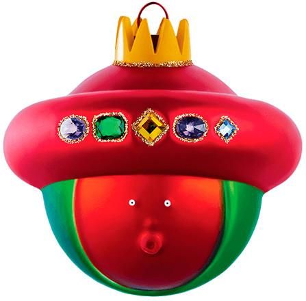 Kolorowa bombka z dmuchanego szka, zaprojektowana na ksztat gowy biblijnego krla Baltazara kojarzonego z betlejemsk szopk. Zabawna stylistyka (z wielkim, czerwonym nakryciem gowy, zot koron i zielon otoczk) oraz dua porcja poczucia humoru, tworz cao, ktra na choince prezentuje si wymienicie. Czas na tradycyjne dekoracje i klimat Wigilii sprzed lat. Bombka jest dekorowana rcznie. witeczne ozdoby woskiej marki A di Alessi to przede wszystkim szalestwo barw, ktre sprawia, e zimowe wita Boego Narodzenia nabieraj niepowtarzalnej magii. Wielki design!