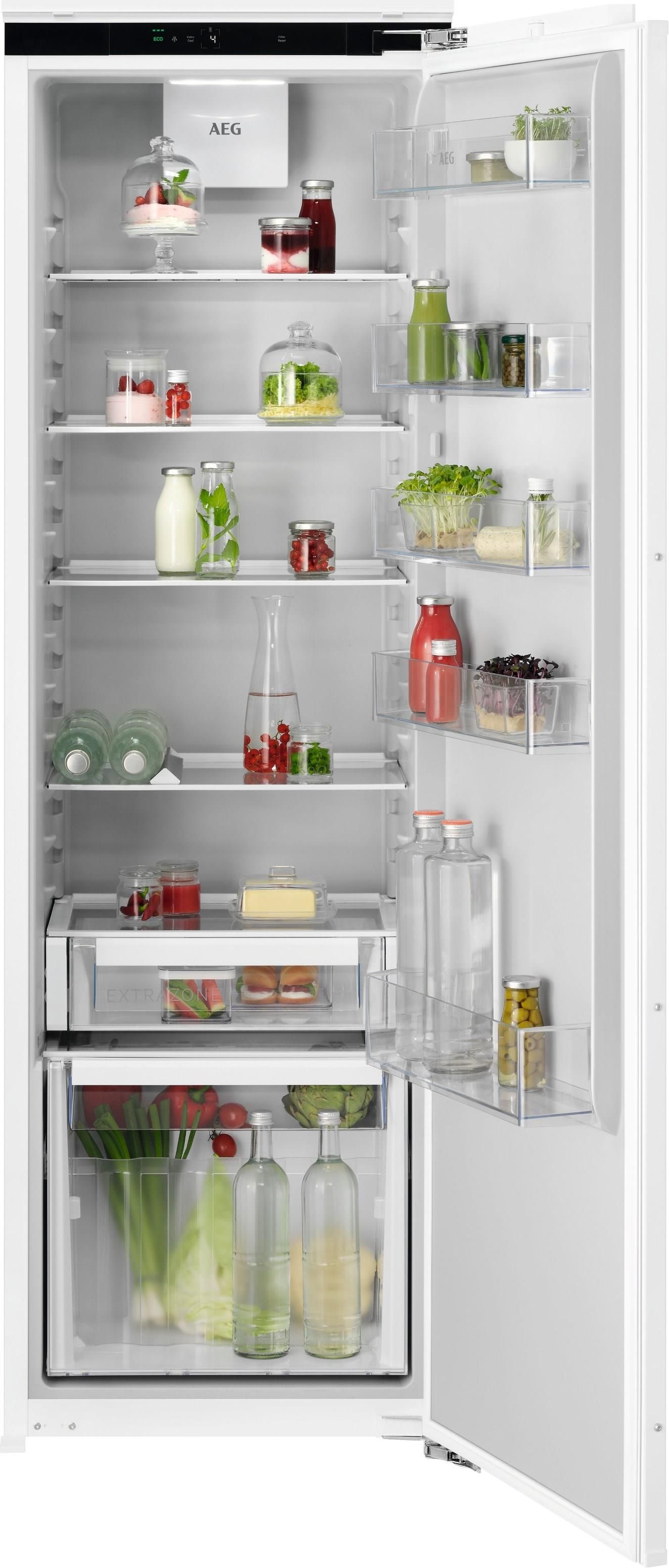 Chłodziarka do zabudowy AEG TK6DS181EC 176,9 cm 6000 Funkcje Wysokość wnęki: 1780 mm W pełni zintegrowana zabudowa, drzwi do drzwi Pojemność netto chłodziarki: 310 l Funkcja Coolmatic zapewnia szybkie schładzanie świeżych produktów Automatyczne rozmrażanie komory chłodziarki Wentylator zapewniający cyrkulację powietrza w celu uzyskania równomiernej temperatury w lodówce Dźwiękowy i wizualny sygnał ostrzegawczy otwartych drzwi Oświetlenie chłodziarki: Luna - 1, góra Półki chłodziarki: 4 pełnej szerokości, biały platik Położenie zawiasów: prawostronne, odwracalne Pojemność komory (świeża żywność) (UE 2017/1369): 310 Całkowita pojemność (UE 2017/1369) : 310 Sposób rozmrażania lodówki: auto Alarm niedomkniętych drzwi: wyświetlacz, dźwiękowy z opcją wyłączenia Sygnalizacja wzrostu temperatury: brak Zużycie energii Klasa energetyczna (UE 2017/1369): E Roczne zużycie energii : 114 Pojemność całk. komór chłodzących (UE 2017/1369) : 310 Klasa chłodzenia (UE 2017/1369): SN-N-ST-T Min. temperatura otoczenia : 10 Klasa emitowanego hałasu (UE 2017/1369): B Poziom hałasu (UE 2017/1369) : 32 Dane techniczne Kod produktu (PNC): 923 584 341 Typ produktu: Chłodziarka Typ półek lodówki: biały plastik Liczba półek lodówki: 4 pełnej szerokości Specjalne półki lodówki: 1, butelki Typ szuflad lodówki: 1 wyjmowalna szuflada (z podziałką) Półki na butelki: 1, pełna szerokość, przezroczysta Oświetlenie lodówki: Luna - 1, góra Domykanie drzwi: SoftClosing Czynnik chłodniczy: R600a Warstwy składowania: 3 Kod EAN: 7333394072906 Instalacja Instalacja: do zabudowy Wymiary WxSzxG : 1769x557x549 Wysokość niszy : 1780 Szerokość niszy : 560 Głębokość niszy : 550 Położenie zawiasów drzwi: prawostronne, odwracalne Pobierana moc : 70 Napięcie : 220-240 Długość przewodu : 2,4 Waga netto : 61 Waga brutto : 63 Równomierna temperatura na każdej półce, dzięki funkcji DynamicAir System 6000 DynamicAir zapewnia stały przepływ powietrza, gwarantując stabilną temperaturę w całej chłodziarce. Wszystkie półki, od samej góry do dołu, są równomiernie chłodzone, co pozwala na zachowanie składników odżywczych i jakości żywności. Innowacje nowej ery. Unikalna lodówka z plastikiem pochodzącym z recyklingu Nastała nowa era chłodzenia. Przedstawiamy naszą chłodziarkę z wnętrzem wykonanym w 70% z tworzyw sztucznych pochodzących z recyklingu. Plastik ze zużytych lodówek służy do produkcji nowych, co pomaga ograniczyć ilość odpadów poprzez obieg zamknięty. *Wewnętrzna warstwa rHIPS wykonana jest w 70% z plastiku pochodzącego z recyklingu, co stanowi 13% całkowitego plastiku w lodówce. Dziesięć lat gwarancji na kompresor Dziesięcioletnia gwarancja na kompresor zapewnia maksymalny spokój ducha. Gwarancja obejmuje robociznę, transport, usuwanie i uzupełnianie gazu, ogólną konserwację i koszty serwisu. Precyzyjne sterowanie za pomocą elektronicznego panelu dotykowego Za pomocą szybko reagującego i wyraźnego elektronicznego wyświetlacza dotykowego można szybko ustawić temperaturę i sprawnie przejść do funkcji chłodziarki. Twoje specjalne miejsce na różne rodzaje produktów. W szufladzie ExtraZone Zachowaj porządek w chłodziarce, unikając mieszania różnych produktów, dzięki szufladzie ExtraZone. Zapewnia ona lepszy dostęp do różnych rodzajów produktów, które są zawsze w zasięgu ręki i wzroku.