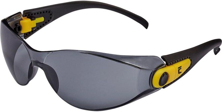 FINNEY Okulary z szybkami poliwęglanowymi, regulowany kąt nachylenia i długość ramion, sportowy wygląd, szybki nieparujące i odporne na zarysowania, klasa F według normy EN 166 - ochrona przed odpryskami ciał stałych o niskiej energii uderzenia, klasa optyczna 1, szare szybki z filtrem UV według …