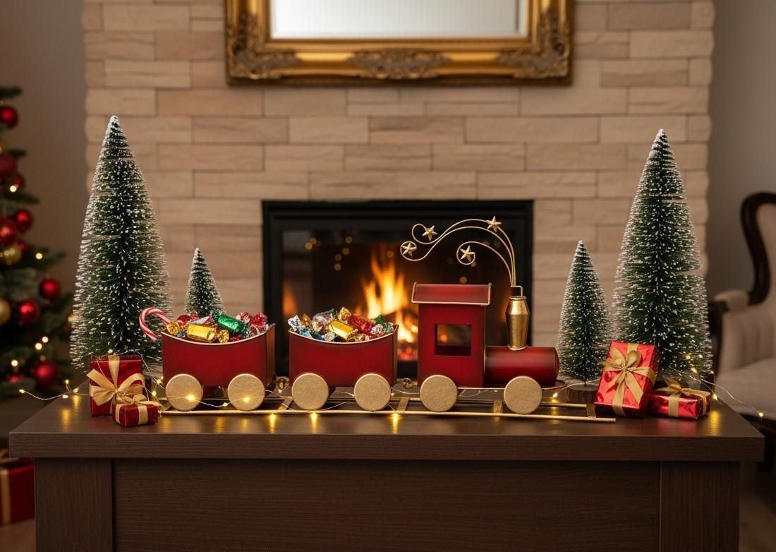 Metalowy pociąg świąteczny z dwoma wagonami 60 cm Ewax Stylowy metalowy pociąg świąteczny marki Ewax to wyjątkowa dekoracja, która wniesie do wnętrza urok i ciepło świątecznych dni. Wykonany z metalu, zachwyca prostotą formy i eleganckim wykończeniem w czerwono-złotej kolorystyce. Dekoracja składa się z lokomotywy oraz dwóch wagoników, połączonych delikatnym łańcuszkiem, osadzonych na ozdobnych torach. Całość ma łączną długość 60 cm, dzięki czemu efektownie prezentuje się na komodzie, parapecie, pod choinką lub jako element większej aranżacji bożonarodzeniowej. Złote koła, komin oraz dekoracyjna gwiazda nadają pociągowi elegancki, świąteczny charakter. To doskonała ozdoba zarówno do domu, jak i do wnętrz komercyjnych – hoteli, restauracji czy witryn sklepowych. Cechy produktu: • długość całkowita: 60 cm • materiał: metal • kolorystyka: czerwień i złoto • elementy: lokomotywa i dwa wagony połączone łańcuszkiem • styl: klasyczny, świąteczny • zastosowanie: dekoracja wnętrz, ozdoba stołu, komody, witryny Zdjęcie tytułowe ma charakter poglądowy. Prezentowana aranżacja może zawierać elementy dekoracyjne niewchodzące w skład zestawu. Szczegóły dotyczące zawartości znajdują się w opisie produktu.