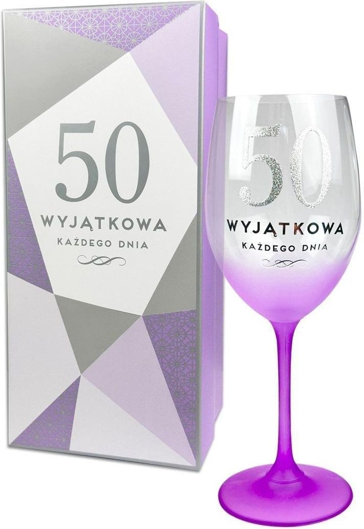 Urodzinowy kieliszek z okazji urodzin zapakowany w estetyczne , kolorowe pudełko.