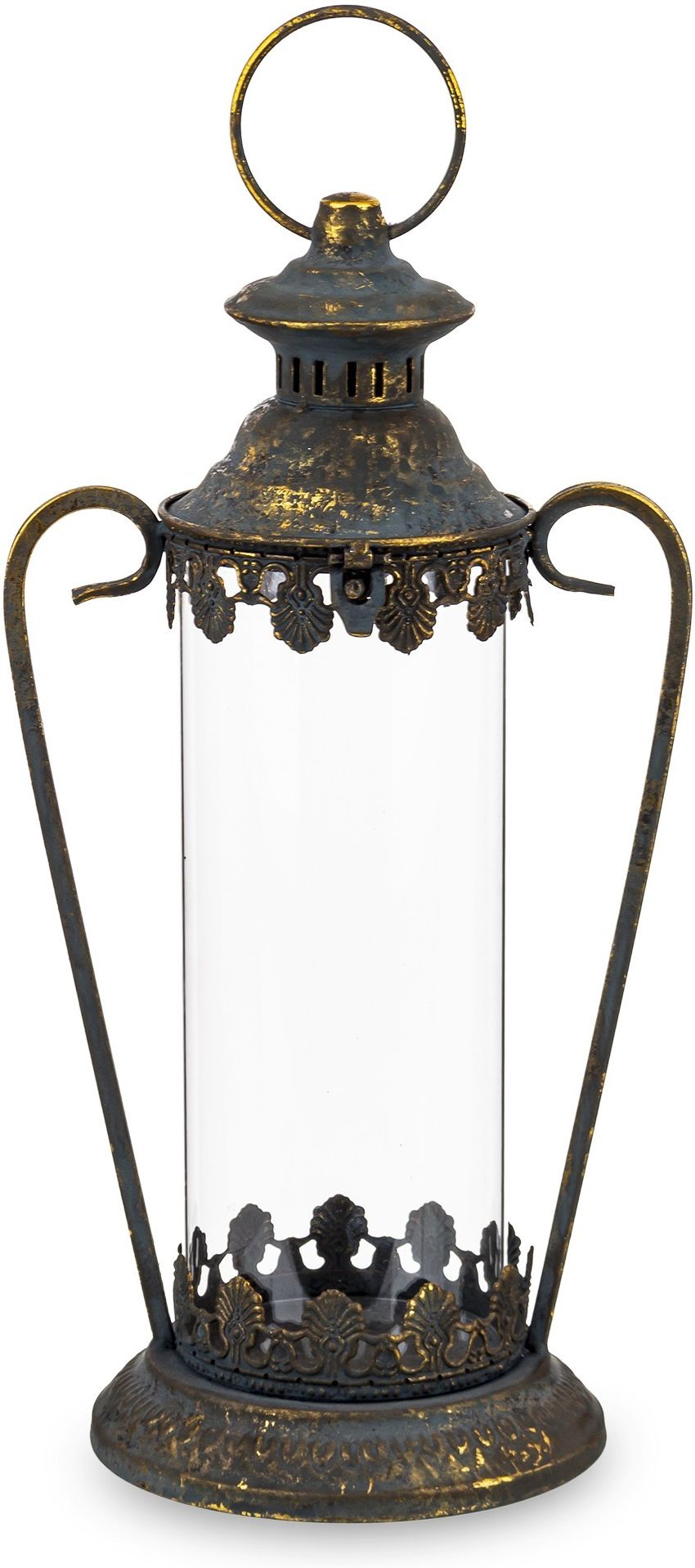 Lampion Lampy i lampiony / Lampiony India House Rozmiar: 43x21x16 Pakowanie: 6/1 Waga: 0.98 kg Materiał: metal. szkło Kolor: stare złoto