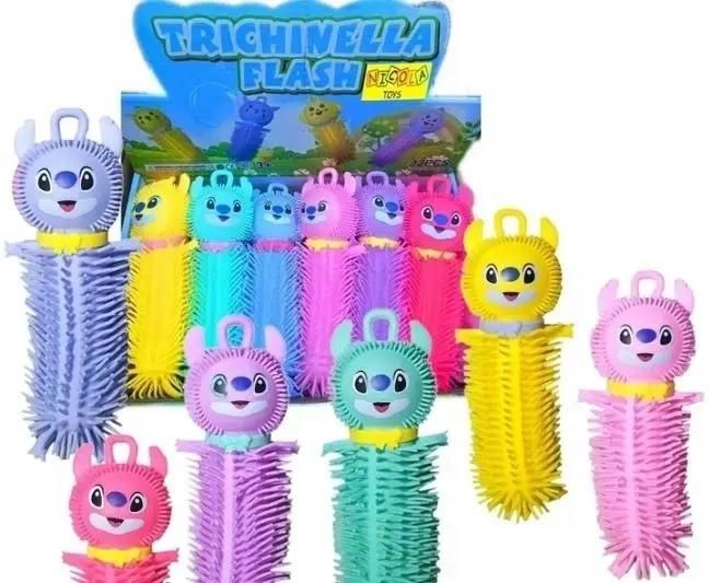 Odkryj fantastyczny świat sensorycznej zabawy z gniotkami "Trichinella Flash"! Te urocze i świecące zabawki to idealny sposób na odstresowanie i relaks dla dzieci i dorosłych. Każdy gniotek ma unikalny kształt i jest wykonany z przyjemnego w dotyku, elastycznego materiału z licznymi wypustkami, które zapewniają dodatkowe wrażenia sensoryczne podczas ściskania i rozciągania. Na górze każdego gniotka znajduje się sympatyczna buźka zwierzątka, co dodaje im uroku i sprawia, że są jeszcze bardziej atrakcyjne. Opakowanie zbiorcze zawiera 12 sztuk gniotków w szerokiej gamie żywych i intensywnych kolorów, takich jak różowy, niebieski, zielony, żółty i fioletowy. Dzięki temu każdy znajdzie swój ulubiony kolor. Te gniotki nie tylko bawią, ale również pomagają w koncentracji i rozwijają zdolności motoryczne. Są idealne jako drobny upominek, nagroda, czy element wyposażenia szkolnego piórnika. Cena dotyczy jednej sztuki gniotka. EAN: 5900360874844