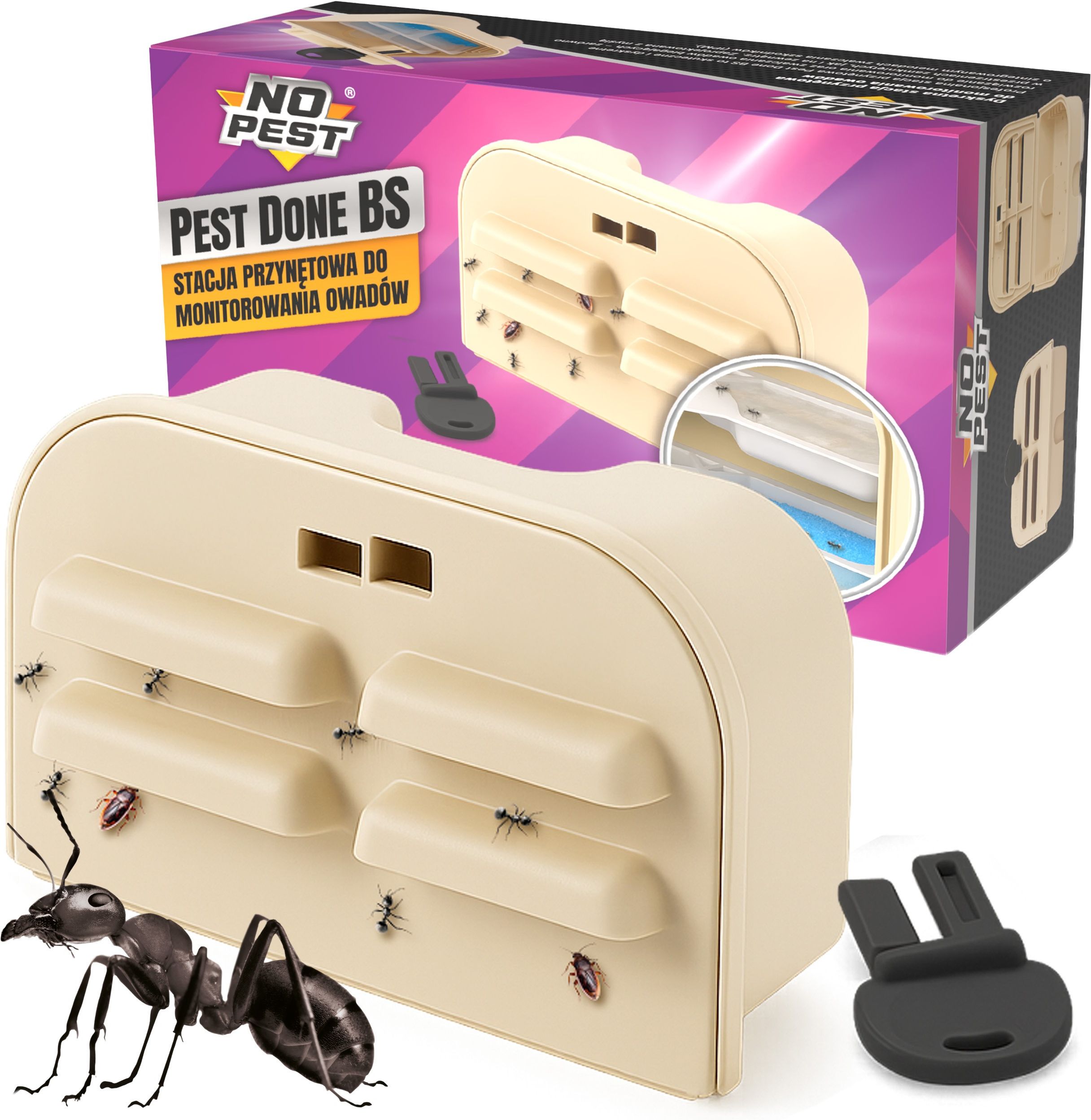 Karmnik na trutkę żel, proszek, płyn, granulat Pest Done BS No Pest Pest Done BS No Pest® to profesjonalna stacja przystosowana do stosowania różnego rodzaju środków owadobójczych na owady biegające. Może być używana z preparatami w formie żelu, granulatu, proszku lub cieczy bez bezpośredniego kontaktu użytkownika z przynętą. Obudowa karmnika jest solidna, zamykana na klucz i odporna na warunki zewnętrzne, co pozwala na bezpieczne i dyskretne rozmieszczenie zarówno w pomieszczeniach domowych, jak i w lokalach gastronomicznych oraz obiektach usługowych. Stacja dezynsekcyjna z 2 wymiennymi tackami Stacja dezynsekcyjna Pest Done BS No Pest® wyposażone w 2 wymienne tacki na różne formy przynęt. Konstrukcja stacji umożliwia jednoczesne zastosowanie np. żelu i granulatu dzięki dwóm osobnym przegródkom. Wystarczy otworzyć stację, umieścić odpowiednią przynętę i zamknąć bez konieczności kontaktu z preparatem. Zamknięta forma stacji skutecznie osłania zawartość, chroniąc przynętę przed kurzem, zabrudzeniem i przypadkowym dostępem. To rozwiązanie higieniczne, estetyczne i przemyślane odpowiednie zarówno do przestrzeni kuchennych, jak i użytkowych. Pest Done BS No Pest® może być wykorzystywana do monitorowania aktywności takich owadów jak: ● Karaczany (w tym karaluchy i prusaki) ● Rybiki cukrowe ● Mrówki i inne owady biegające ● Pluskwiaki i owady pełzające o podobnych rozmiarach ● Owady występujące w magazynach i kuchniach To proste i profesjonalne narzędzie, które wspiera codzienne monitorowanie obecności owadów w sposób uporządkowany, bezpieczny i dyskretny. Dlaczego warto wybrać Pest Done BS No Pest®? ✔️ Uniwersalna stacja do stosowania przynęt w formie żelu, granulatu i cieczy, możesz dopasować preparat do konkretnego zastosowania ✔️ Umożliwia skutecznezwalczanie owadów biegających takich jak karaluchy, prusaki, rybiki czy mrówki ✔️ Bezkontaktowo zabezpiecza przynętę umieszczoną wewnątrz stacji, dostęp zabezpieczony kluczykiem ✔️ Przeznaczona do użytku domowego i profesjonalnego, odpowiednia do kuchni, lokali gastronomicznych, magazynów i sklepów ✔️ Estetyczna i higieniczna co sprawia, że to zamknięta konstrukcja, która jest łatwa do ukrycia w otoczeniu ✔️ Wielokrotnego użytku przez co jest trwała, łatwa do czyszczenia dzięki gładkiej powierzchni Sposób użycia stacji Pest Done BS No Pest® krok po kroku 1. Otwórz stację za pomocą dołączonego kluczyka. 2. Umieść wybraną przynętę (żel, granulat lub ciecz) w jednej lub obu tackach wewnątrz stacji. 3. Zamknij pokrywę i upewnij się, że stacja jest prawidłowo zabezpieczona. 4. Ustaw stację w miejscu potencjalnej aktywności owadów np. wzdłuż ściany, za sprzętem, w pobliżu rur lub w miejscach ciepłych i wilgotnych. 5. Regularnie kontroluj stację a w razie potrzeby uzupełnij przynętę lub oczyść wnętrze. 6. Przed ponownym użyciem dokładnie wyczyść stację, jej gładka powierzchnia ułatwia mycie i dezynfekcję. Stacja nie zawiera przynęty w zestawie należy dobrać odpowiedni preparat w zależności od rodzaju owadów i miejsca zastosowania. Specyfikacja Przeznaczenie: monitoring owadów biegających (karaluchy, prusaki, rybiki, mrówki) Kompatybilność: przynęty w formie żelu, granulatu, cieczy Zamykanie: na klucz (w zestawie) Liczba tacek: 2 wyjmowane tacki na przynęty Materiał: tworzywo sztuczne odporne na wilgoć i uszkodzenia Powierzchnia: gładka, łatwa do czyszczenia Użytkowanie: wielokrotne, przystosowana do czyszczenia i ponownego napełnienia Do stosowania: wewnątrz i na zewnątrz pomieszczeń Wymiary stacji: 17 × 9 × 6,5 cm Marka: No Pest ŚRODKI OSTROŻNOŚCI P102 Chronić przed dziećmi. Przechowywać w oryginalnym opakowaniu w temperaturze pokojowej. odstraszanie.pl Wszelkie Prawa Zastrzeżone. All Rights Reserved.