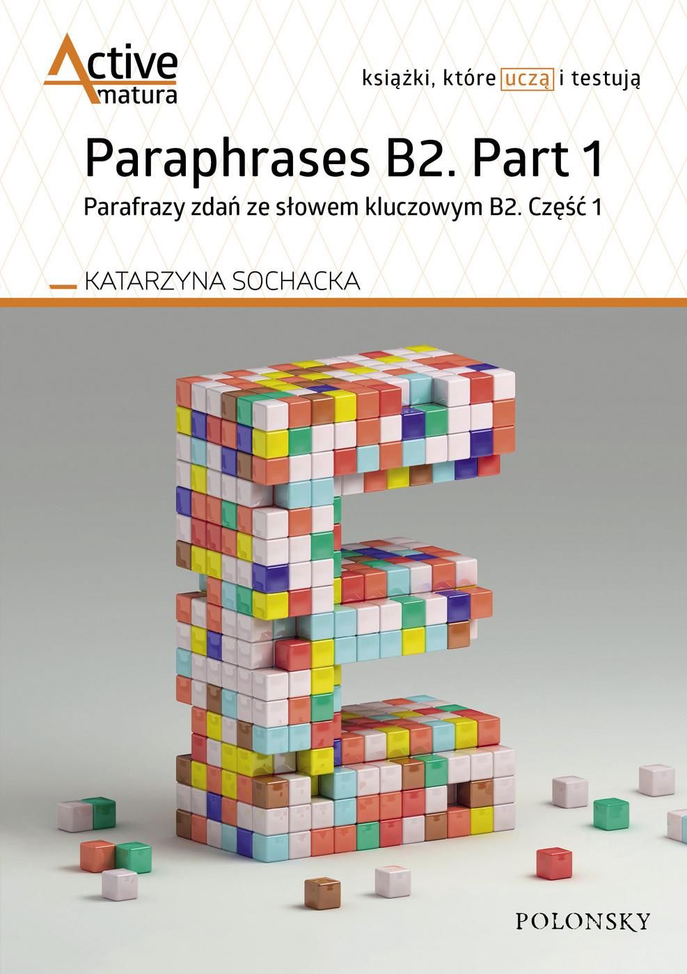 ACTIVE MATURA Unikalna seria publikacji przeznaczonych dla osób, które przygotowują się do egzaminu maturalnego. Zawarte w nich materiały pozwalają na powtórzenie oraz przetestowanie różnorodnych aspektów języka angielskiego. Zakres tematyczny publikacji jest zgodny z podstawą programową kształcenia ogólnego (dla szkoły ponadpodstawowej) oraz informatorami CKE. Paraphrases B2. Part 1. Parafrazy zdań ze słowem kluczowym B2. Część 1 to książka, która pozwala powtórzyć i przetestować znajomość gramatyki angielskiej poprzez dokonywanie tzw. transformacji zdań ze słowem kluczowym. • Uwzględnia zagadnienia gramatyczne najczęściej testowane na egzaminie maturalnym: stronę bierną, tryby warunkowe, mowę zależną, Subjunctive, czasowniki modalne oraz zdania przydawkowe • Zawiera zestawienie przykładowych parafraz • 50 ćwiczeń, czyli 750 parafraz zdań • 200 parafraz zdań do rozwiązania w sekcji powtórkowej • Klucz odpowiedzi do wszystkich ćwiczeń