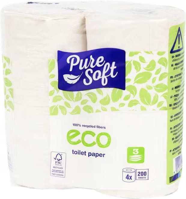 Pure Soft Ekologiczny Papier Toaletowy 4X200 Listków Wieliczka