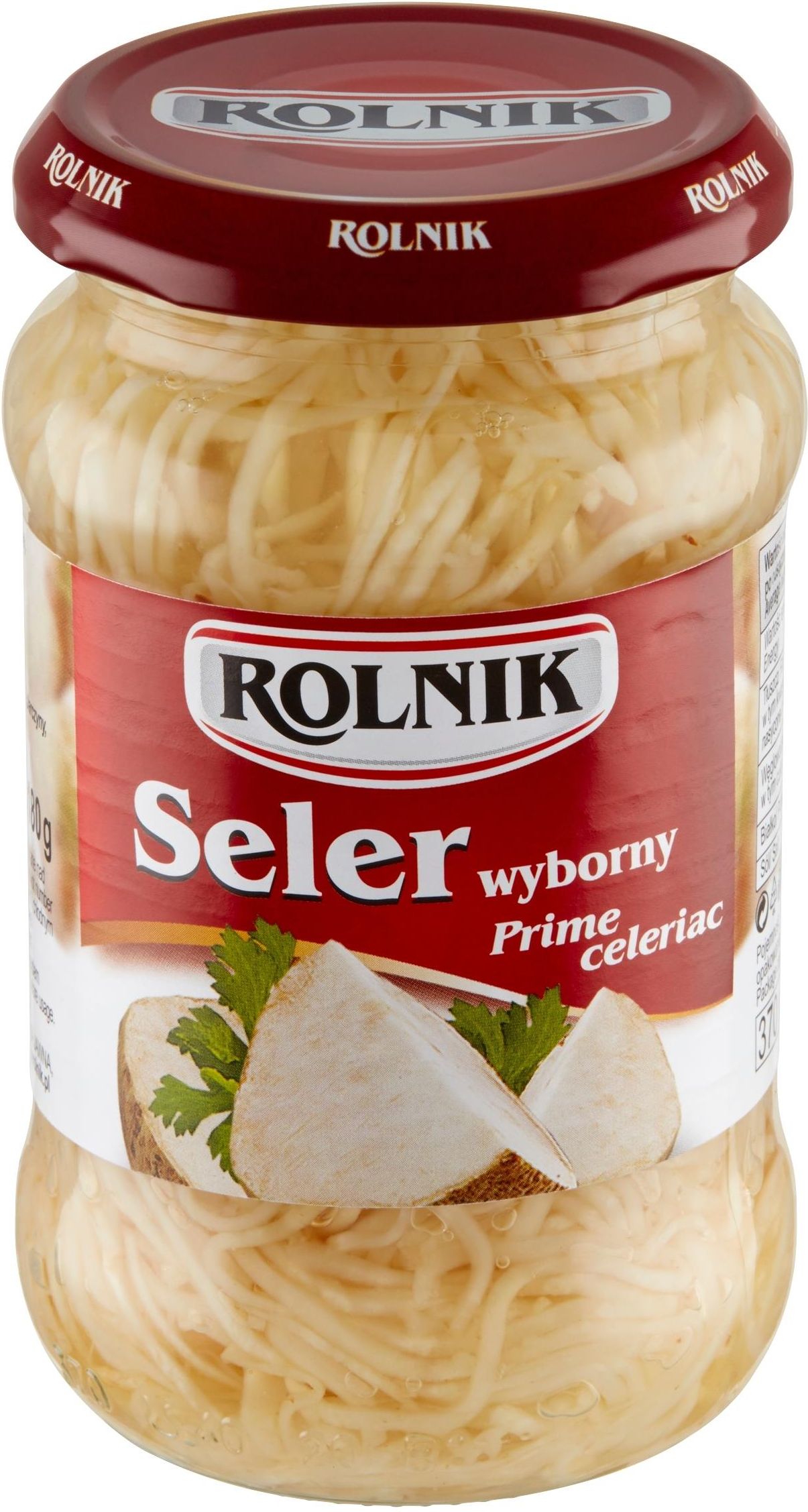 Rolnik Seler wyborny 340g to wyjątkowa sałatka z ciętego selera, starannie przygotowana w aromatycznej zalewie octowej. Dzięki temu połączeniu, każdy kęs dostarcza niepowtarzalnych doznań smakowych, które z pewnością zachwycą Twoje podniebienie. Idealny jako dodatek do sałatek oraz surówek, Rolnik Seler wyborny wkomponuje się w wiele dań, dodając im świeżości i chrupkości. To doskonały wybór dla miłośników zdrowego stylu życia. Produkt dostępny w praktycznym opakowaniu o wadze netto po odsączeniu 180 g. Wybierz opakowanie zbiorcze, które zawiera 6 sztuk, aby zawsze mieć pod ręką ten smaczny dodatek do posiłków! Rolnik Seler wyborny 340g to doskonały wybór dla każdego, kto pragnie wzbogacić swoje posiłki o smakowite i zdrowe dodatki. Nasza sałatka z ciętego selera przygotowywana jest z najwyższej jakości składników, a jej wyjątkowa zalewa octowa sprawia, że jest idealnym uzupełnieniem wielu dań. Dzięki starannemu procesowi produkcji, Rolnik Seler wyborny zachowuje świeżość i chrupkość, co czyni go niezastąpionym elementem każdej kuchni. Ten produkt jest wszechstronny i doskonale sprawdzi się jako dodatek do sałatek, surówek oraz jako samodzielna przekąska. Dzięki swojej wyrazistej zalewie, Rolnik Seler wyborny doda smaku i aromatu do każdego posiłku, a także będzie świetnym wyborem dla tych, którzy dbają o zdrową dietę. Rolnik Seler wyborny dostępny jest w praktycznym opakowaniu o wadze netto po odsączeniu 180 g. Dla większej wygody oferujemy również możliwość zakupu w opakowaniu zbiorczym, które zawiera 6 sztuk produktu. Dzięki temu zawsze będziesz mieć pod ręką ten pyszny dodatek do swoich ulubionych potraw. Wartość odżywcza w 100 g: wartość energetyczna: 156kJ/37kcal, tłuszcz: <0,5g, w tym kwasy tłuszczowe: <0,1g, węglowodany: 6,7g, w tym cukry: 6,4g, białko: 0,7g, sól: 0,68g. Produkt składa się z wysokiej jakości składników, w tym selera, wody, octu spirytusowego, cukru i soli, co czyni go zdrowym wyborem dla każdego. Sposób przechowywania: przechowywać w suchym i chłodnym miejscu. Po otwarciu należy przechowywać w lodówce, aby zachować świeżość produktu. Kraj pochodzenia: Polska. Producent: Firma Handlowa Rolnik Spółka Jawna, ul. Przelotowa, 743-190 Mikołów.