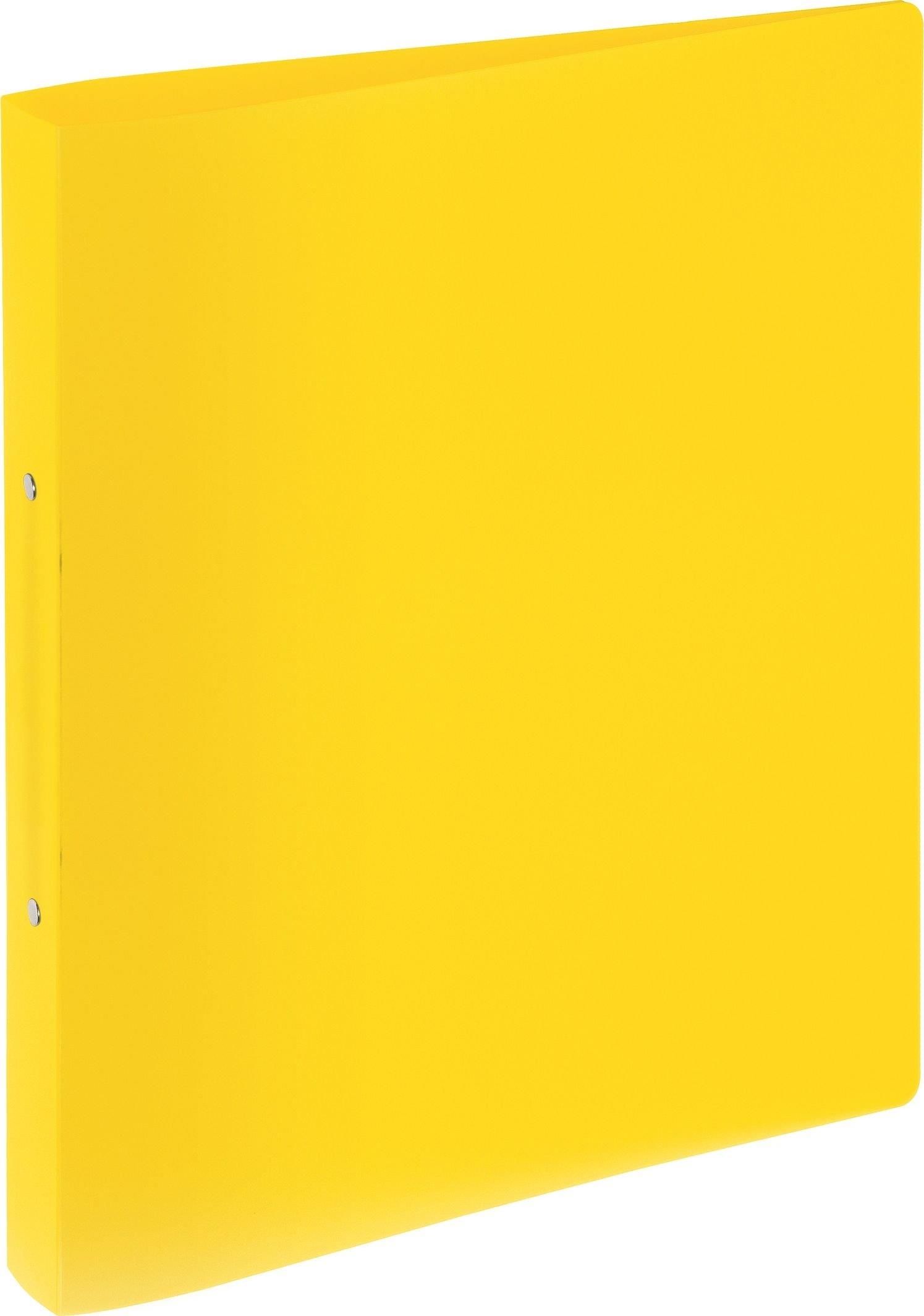 Segregatory z tworzywa PP matowe grzbiet o szerokości 16 mm format A4 mechanizm metalowy 2-ringowy rozmiar 260 x 320 x 23 mm kolor żółty