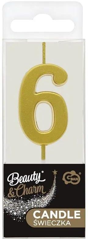 Świeczka Piker B&C Cyfra 6 Metaliczna Złota 9,5Cm Wieliczka