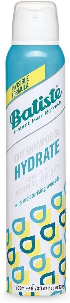 Batiste Hydrate to suchy szampon do włosów przesuszonych i normalnych. Niewidoczna formuła wzbogacona o olejek abisyński, kokosowy, awokado, witaminę E, glicerynę, wyciąg z ziaren soi i keratynę. Skutecznie absorbuje sebum, odświeżając włosy i nawilżając je bez obciążania. Sprawia, że włosy stają się miękkie, pełne objętości i pachnące. Produkt bez parabenów, silikonów i SLS.