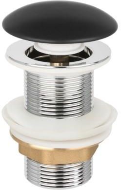 Maskuje otwór odpływowy Zapewnia wygodne otwieranie i zamykanie odpływu bez konieczności wyciągania całego korka lub stosowania dodatkowych mechanizmów (cięgna korka) Gwarantuje efektywny przepływ wody Przemyślana konstrukcja zapobiega gromadzeniu się osadów i tworzeniu zatorów Istnieje możliwość wyjęcia całego mechanizmu korka z otworu umywalkowego w celu oczyszczenia syfonu i korka Wymiar: G 1 1/4” Do umywalek bez otworu przelewowego Materiał: mosiądz chromowany Uszczelki: gumowe i silikonowe Kolor: czarny mat PKWiU: 25.99.11.0 PCN: 84818019 Waga: 0.25 kg Gwarancja: 2 lata Rozmiar: 6.5 x 6.5 x 10 Rysunek 1 Atest