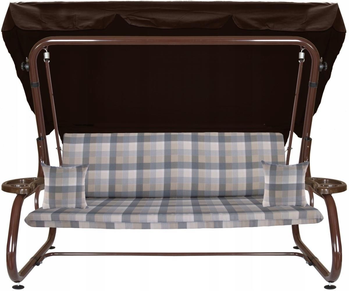HUŚTAWKA OGRODOWA PREZYDENT TORINO WZÓR NUMER 18 Huśtawka w konfiguracji stelaż - Brązowy daszek - Brązowy poduszki – wzór 18 jaśki – wzór 18 Jednak mogą Państwo dowolnie wybierać spośród oferowanych przez nas kolorów stelaży huśtawek i daszków. O wyborze należy poinformować w "Wiadomości dla Sprzedającego" podczas wypełniania formularza. Oferujemy państwu huśtawkę ogrodową bardzo solidną i trwałą (rura ø 60,3mm; grubość ścianki 1,5-2,0mm). Lakierowana elektrostatycznie (proszkowo) farbami epoksydowo-poliestrowymi. W skład kompletu wchodzi stelaż, poduszki, jaśki i daszek. Oferujemy państwu poduchy na huśtawkę ogrodową wypełnione pianką tapicerską PUR. Każda z poduch ma wszyte po obu stronach troczki. Poduchy uszyte z wysokiej jakości bawełny z 30% domieszką poliestru. Obszyteobustronnie z tego samego materiału, bardzo miłe w dotyku, wyposażone w praktyczne suwaki, umożliwiające pranie tapicerki, wypełnione gąbką – grubość około 8 cm - zapewniające duży komfort I wygodę wypoczynku. Wymiary poduszek: szer. 180cm (2 x 180cm), dł. 108cm (łamanie: siedzenie 58 cm, oparcie 50 cm) A do tego 2 jaśki 45cm x 45cm z suwakami, które jeszcze bardziej zwiększą komfort wypoczynku. Daszek (120x214cm) wykonany z materiału impregnowanego (poliester) - regulowany, nieprzemakalny, zapewniający ochronę przed słońcem i deszczem, posiada poprzeczne i narożne zakładki,które chronią daszek przed podnoszeniem się i spadaniem przy podmuchach wiatru. Daszek i poduchy można prać ręcznie w 30 stopniach. Wymiary stelaża siedziska 180cm x 55cm Wymiary stelaża oparcia 180cm x 55cm Wymiary daszku 120cm x 214cm Wymiary rozłożonej huśtawki 240cm x 125cm x 165cm Poniżej mogą państwo zobaczyć przykładowe konfiguracje kolorystyczne. Jeśli państwo życzą sobie można dowolnie konfigurować huśtawkę ( kolor stelaża huśtawki, daszka, jaśków). Należy o zmianie kolorów poinformować w emailu "Wiadomość do sprzedającego" po zakupie huśtawki. KOLORY STELAŻY WYMIARY PODUSZEK KOLORYSTYKA DASZKÓW