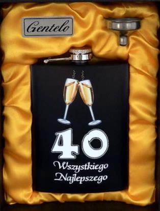 Piersiówka z Lejkiem na 40 Urodziny na Prezent w Opakowaniu Prezentowym Wieluń