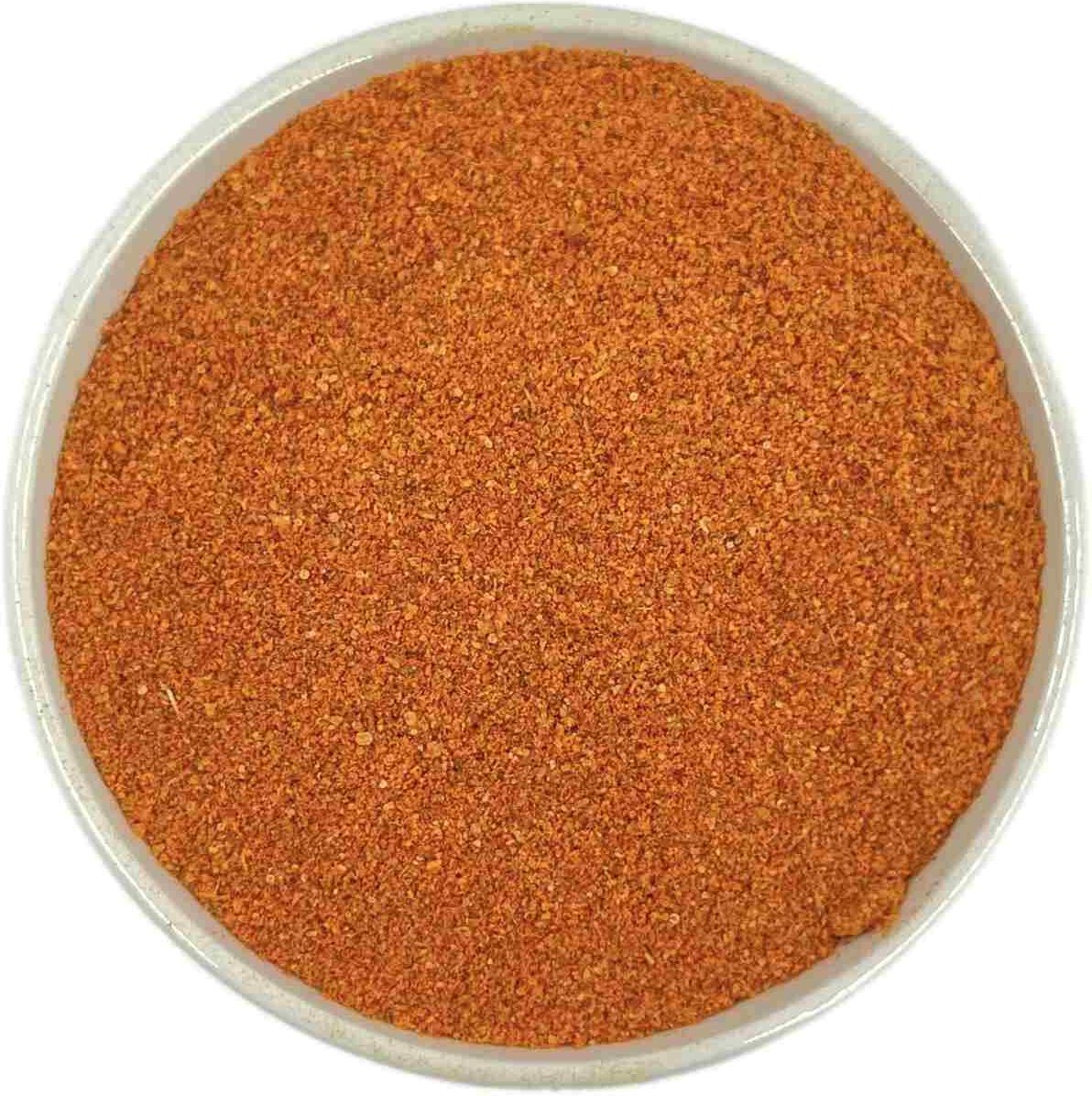 To pełna aromatu kompozycja przypraw sprawi, że potrawy będą aromatyczne i lekko pikantne. Pozwoli uzyskać złocistą i chrupiącą skórkę. Informacje dodatkowe: Wartość odżywcza w 100g Wartość energetyczna 1061kj/253 kcal Tłuszcz 4,97g W tym kwasy tłuszczowe nasycone 1,38g Węglowodany 40,2g W tym cukry 7,4g Błonnik 11,3g Białko 6,1g Sól 38,73g Składniki: sól, papryka słodka, kukurydza, cukier, imbir, pomidor, czosnek, papryka ostra, kurkuma, kminek, majeranek, szałwia, rozmaryn, chilli, gałka muszkatołowa, kardamon, barwnik naturalny- ekstrakt papryki Informacje o alergenach: *Produkt może zawierać zboża zawierające: gluten, seler, gorczycę, nasiona sezamu, orzeszki ziemne oraz orzechy Forma: mieszanka Zastosowanie: do mięs Kształt: mielone Sód: 0,01g Waga: 100g