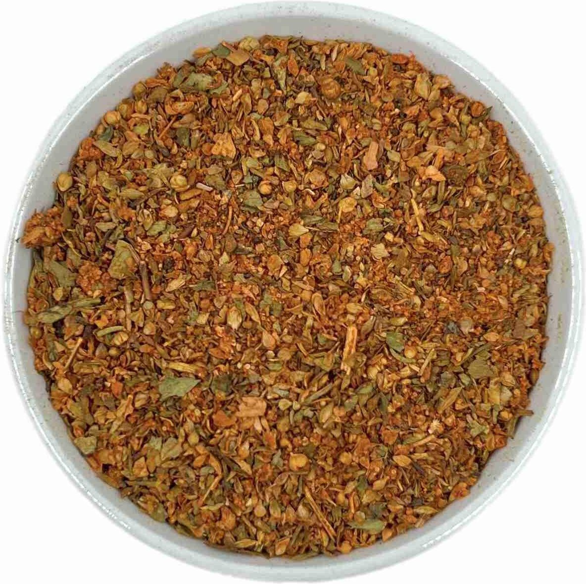 Kompozycja ziół o wyrazistym smaku sprawi, że potrawa będzie apetyczna i udana. Doda ona twojemu daniu, wyrazisty smak, aromat, odrobinę pikanterii oraz podkreśli walory pomidorowego sosu. Informacje dodatkowe: Wartość odżywcza w 100g Wartość energetyczna 221,21kj/52,86 kcal Tłuszcz 1,10g W tym kwasy tłuszczowe nasycone 0,21g Węglowodany 11,86g W tym cukry 0,43g Błonnik 5,92g Białko 1,49g Sól 0g Składniki: sól papryka słodka, cukier, kukurydza, oregano, cząber, lubczyk, czosnek papryka ostra, naturalny barwnik- ekstrakt papryki Informacje o alergenach: *Produkt może zawierać zboża zawierające: gluten, seler, gorczycę, nasiona sezamu, orzeszki ziemne oraz orzechy Forma: mieszanka Zastosowanie: do ryżu i makaronów Kształt: mielone Waga: 100g