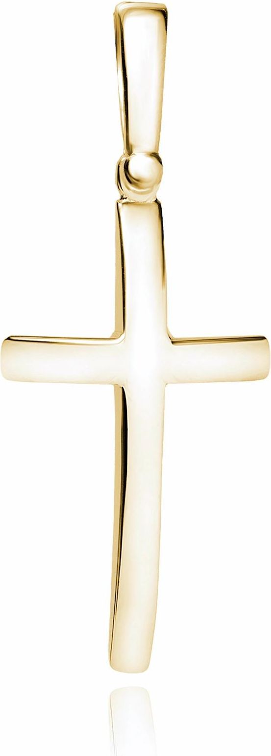 Elegancki wykonany z pozłacanego srebra gładki wypukły krzyżyk, polerowany na wysoki połysk.