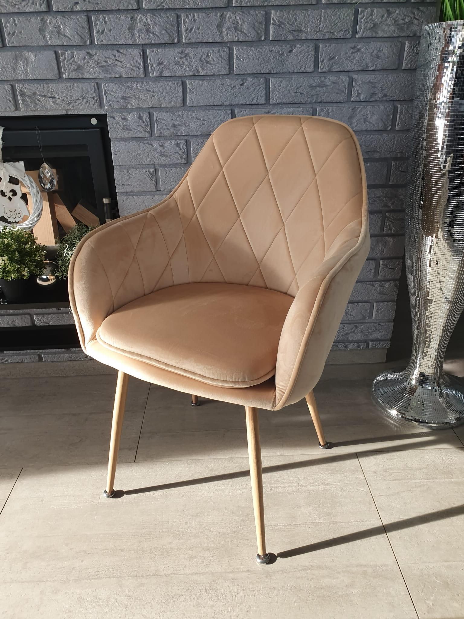 Big Krzesło Tapicerowane Welur Beżowe Big 029 Wieruszów