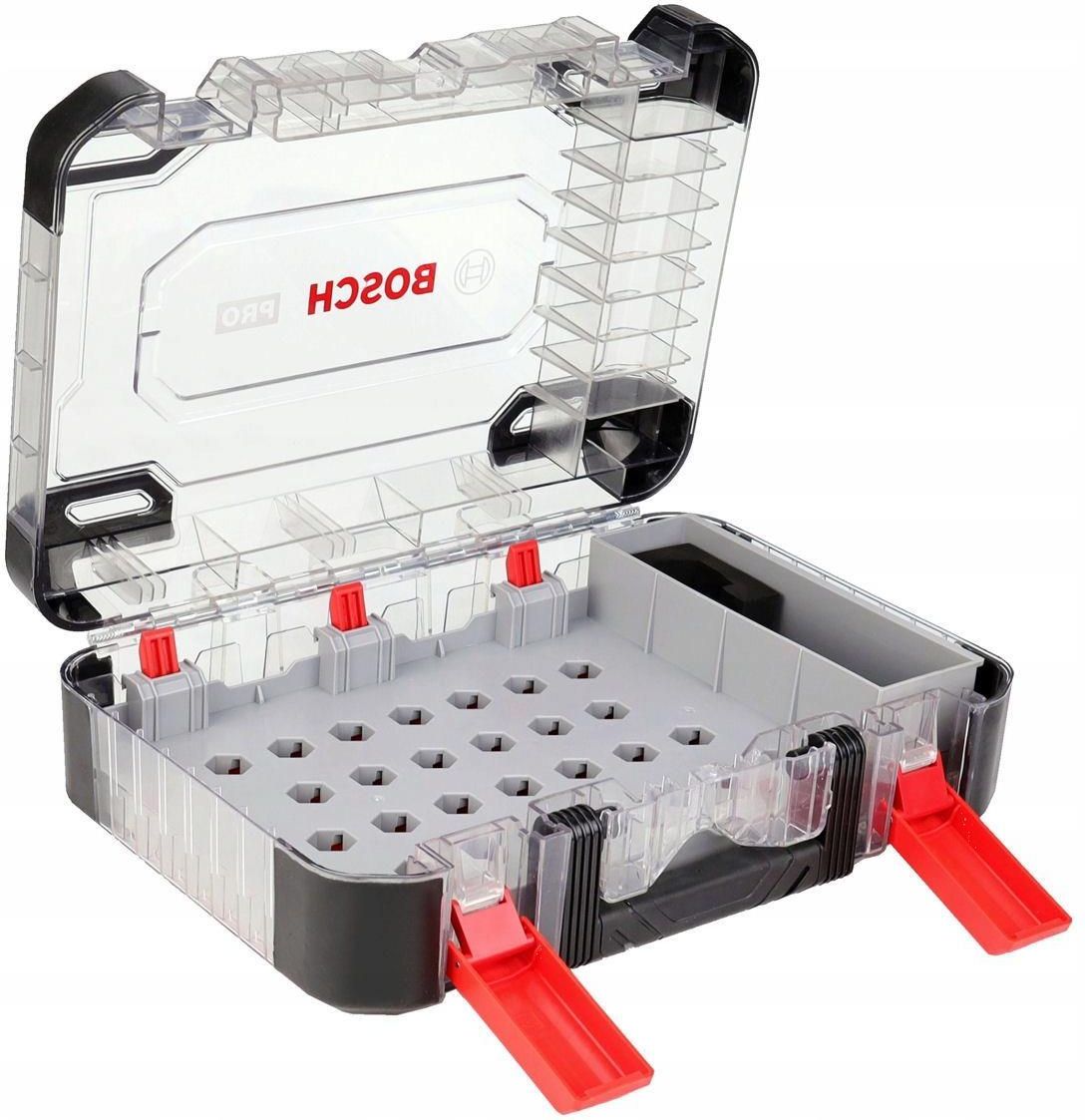 Walizka PRO CASE z tworzywa sztucznego na piły otwornice typu Power Change BOSCH Professional. arametry techniczne: Długość walizki: 365 mm Szerokość walizki: 250 mm Głębokość walizki: 120 mm Pojemność walizki: do 28 pił otwornic (zależy od średnicy umieszczanych pił w walizce) Numer katalogowy producenta: 2608483157 Walizka PRO CASE na piły otwornice typu Power Change firmy BOSCH. Walizka przeznaczona jest do przechowywania i do transportu pił otwornic typu Power Change oraz osprzętu do tych pił (wiertła pilotujące, adaptery oraz chwyty). Idealnie pasuje do wszystkich rodzajów pił otwornic typu Power Change firmy BOSCH: Progressor for Wood and Metal (kolor pił - biały) Special for Sheet Metal (kolor pił - niebieski) Multi Construction (kolor pił - szary) Speed for Multi Construction (kolor pił - czarny) Diamond for Hard Ceramics (kolor pił - czarny) Duża uniwersalność walizki pozwala na przechowywanie wszystkich rodzajów pił otwornic typu Power Change firmy BOSCH. Wysoka odporność na uszkodzenia – walizka posiada specjalne elementy gumowe osłaniające części boczne walizki Składana rękojeść główna pokryta miękkim, gumowym materiałem pozwala na pewny chwyt i gwarantuje, że walizka nie wyślizguje się z ręki w trakcie transportu Specjalny pojemnik wewnątrz walizki przeznaczony do przechowywania osprzętu dodatkowego takiego jak: wiertła pilotujące, adaptery, chwyty, czy preparaty chłodząco-smarujące. Przeźroczysta pokrywa walizki ułatwia korzystanie z walizki, bez konieczności otwierania użytkownik od razu widzi jej zawartość. Duża pojemność walizki pozwala na umieszczenie maksymalnie 28 pił otwornic (pojemność walizki zależy od średnicy umieszczanych pił w walizce). Dostawa zawiera Walizkę na piły otwornice firmy BOSCH